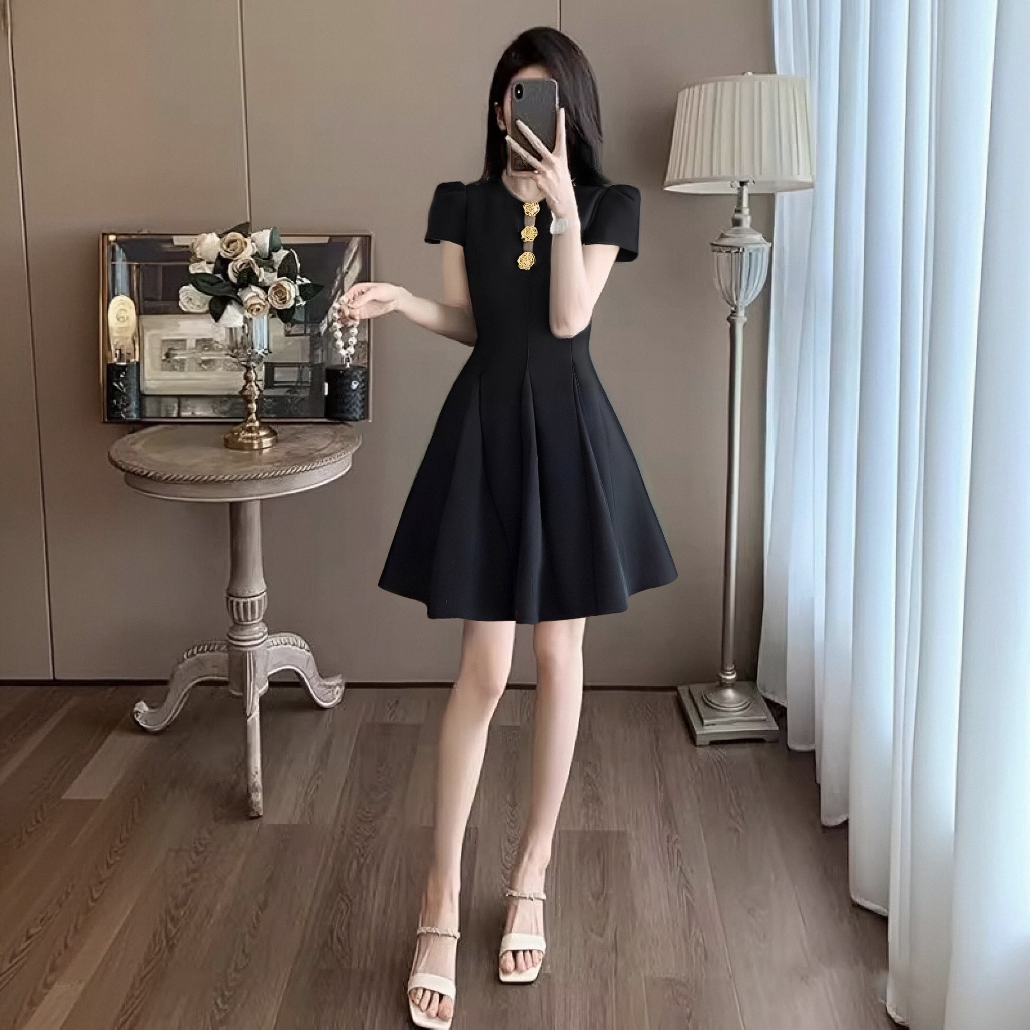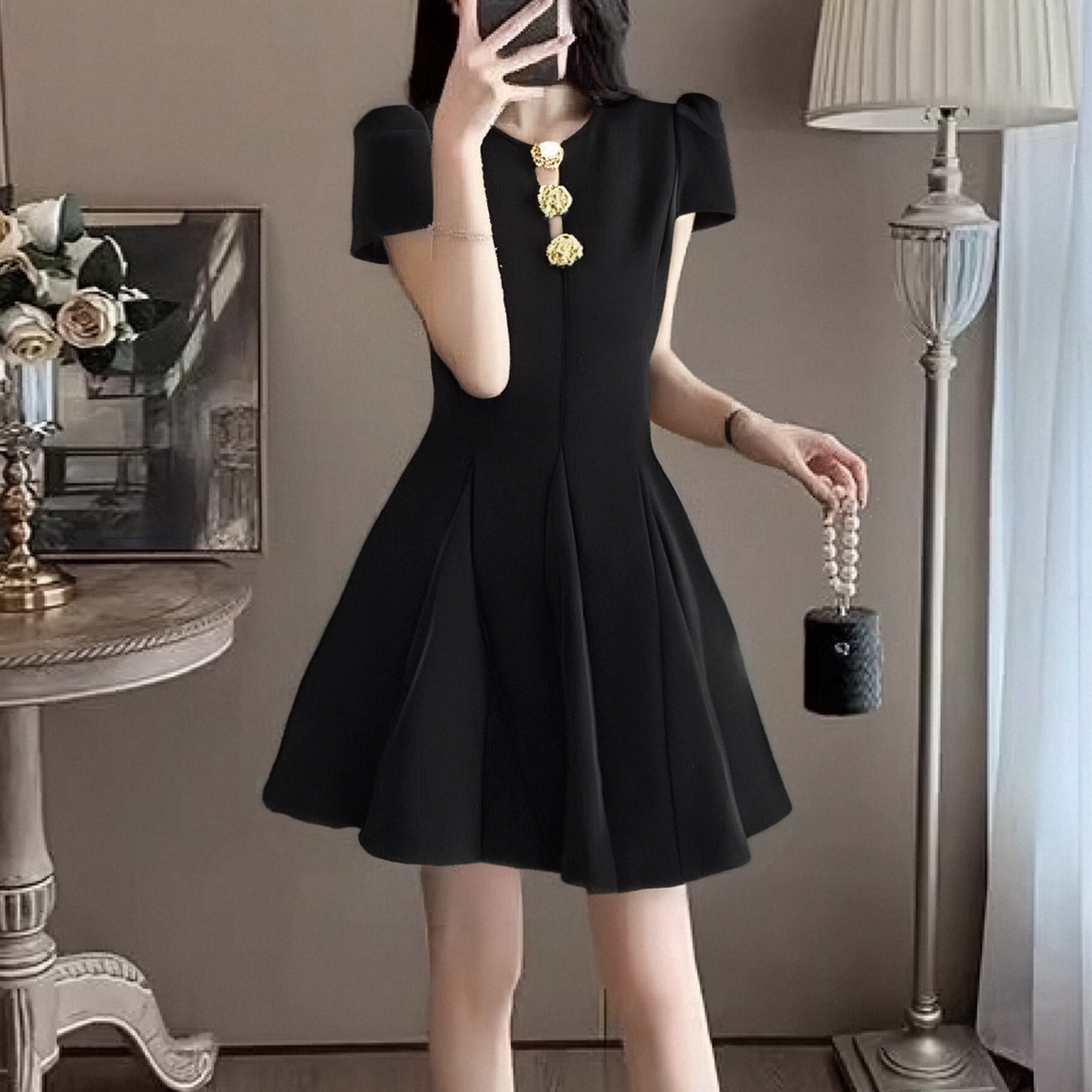 连衣裙夏小众设计短裙子D1939A 高级感泡泡袖 2026年新款 黑色法式