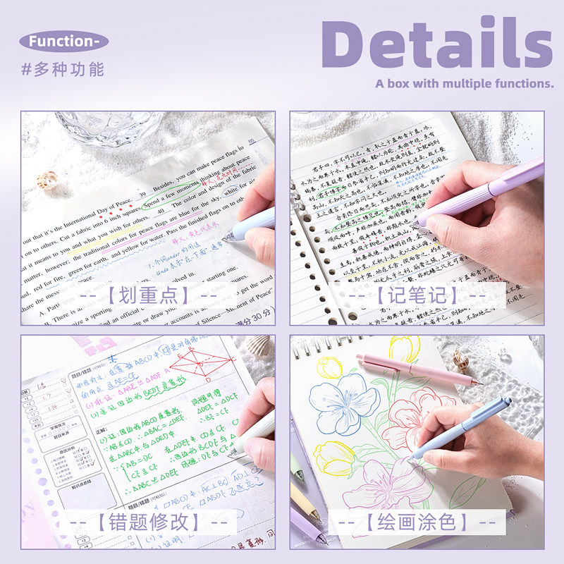 蓝果手账笔手帐笔全套162色彩色中性笔肤色绘画专用做笔记大容量暖系莫兰迪色系套装 紫色多色画画顺滑蓝色