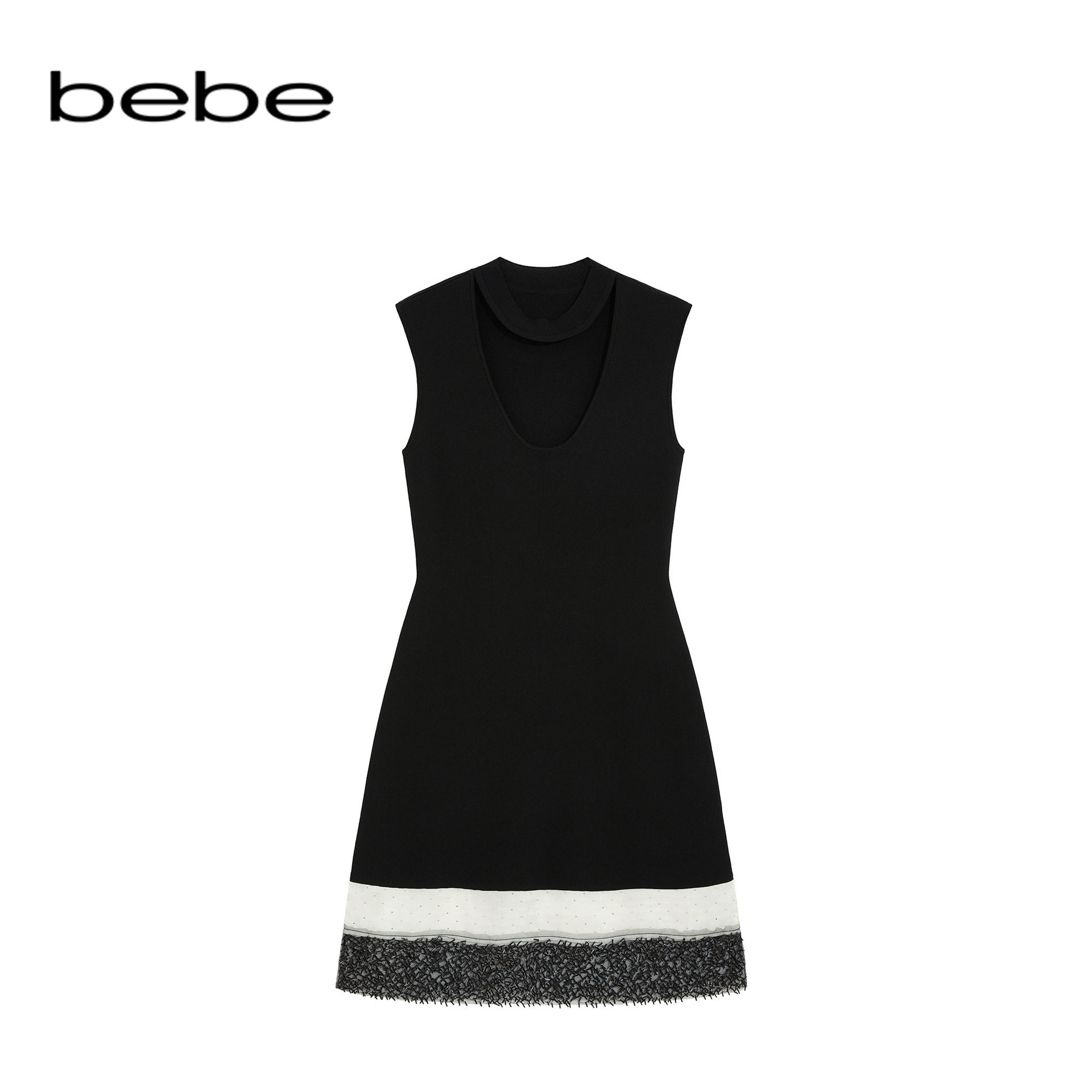 连衣裙330902 女士含有粘纤裙摆拼接设计U领无袖 bebe2025秋季 新款