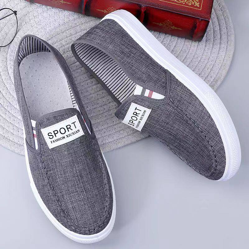 低帮透气板鞋 一脚蹬单鞋 秋季 休闲帆布鞋 老北京布鞋 运动男鞋 春夏季