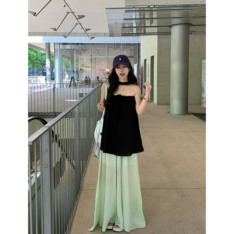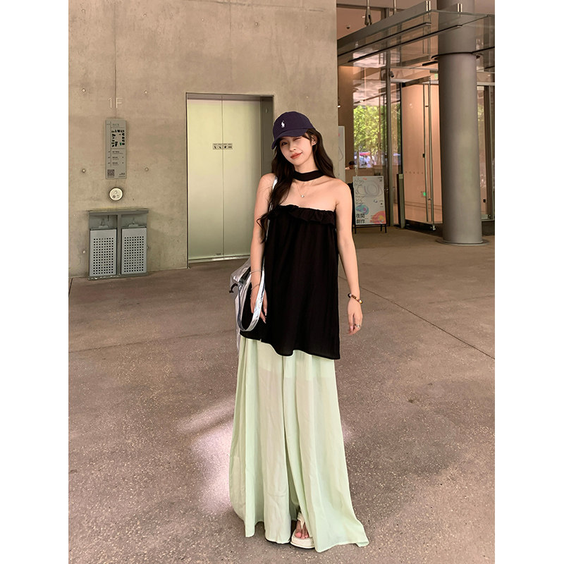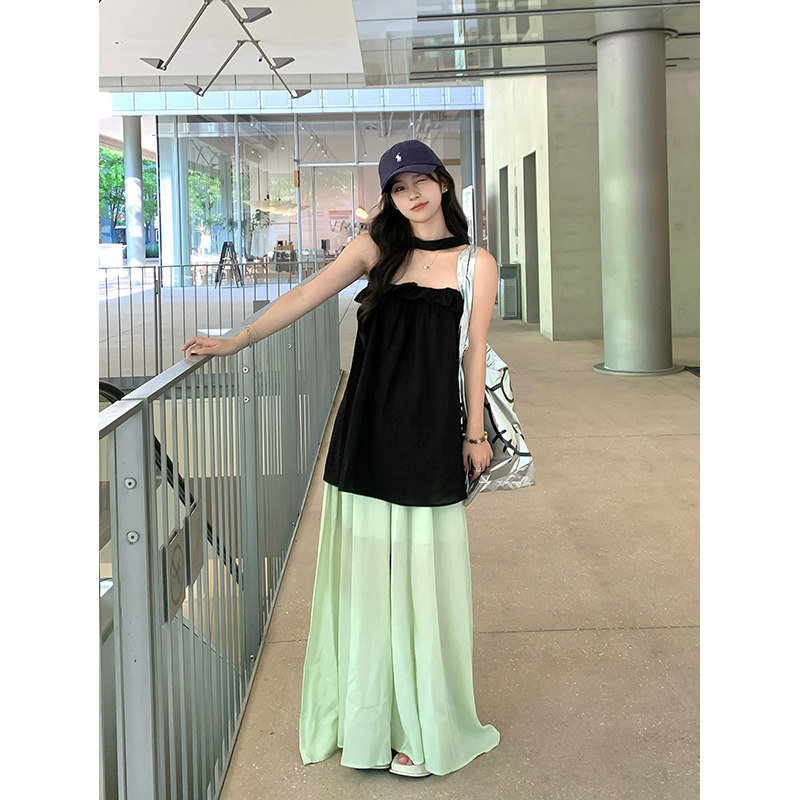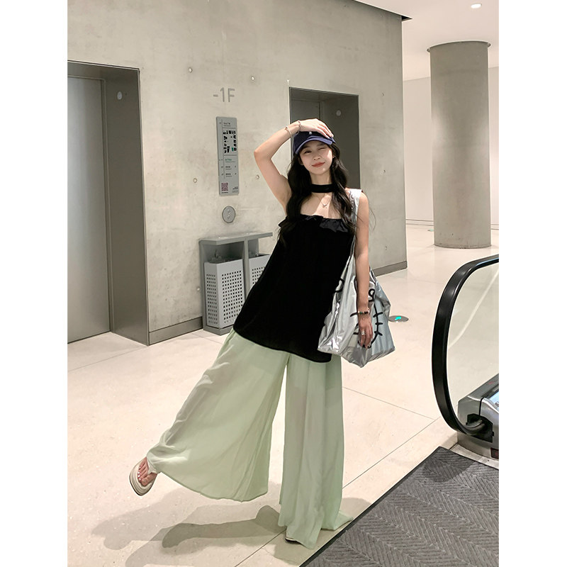 韩系高腰宽松设计感气质温柔拖地裙裤 新款 女 夏季 Adan轻薄阔腿裤
