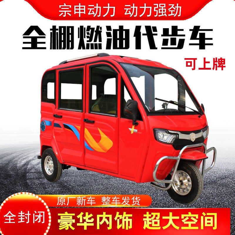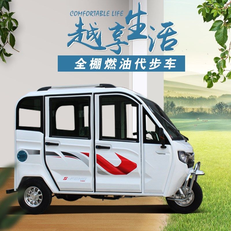 新款 燃油三轮车摩托车客运全封闭带棚家用老年人残疾人汽油代步车
