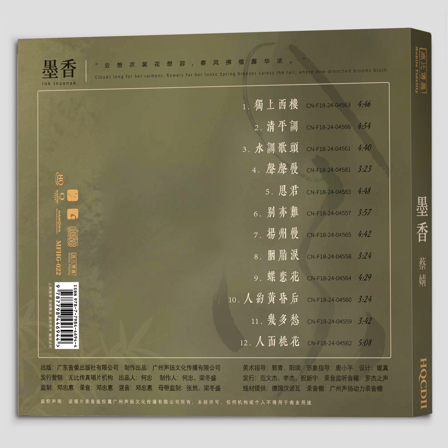HQ2HQII 墨香 1CD高音质女声发烧试音碟 蔡婧 限量编号无比传真