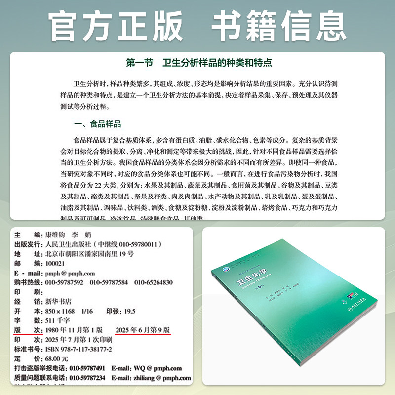 社 康维钧李娟本科预防医学专业十四五规划教材配增值大学本科预防医学专业教材环境卫生学流行病学人民卫生出版 卫生化学第9版 九版