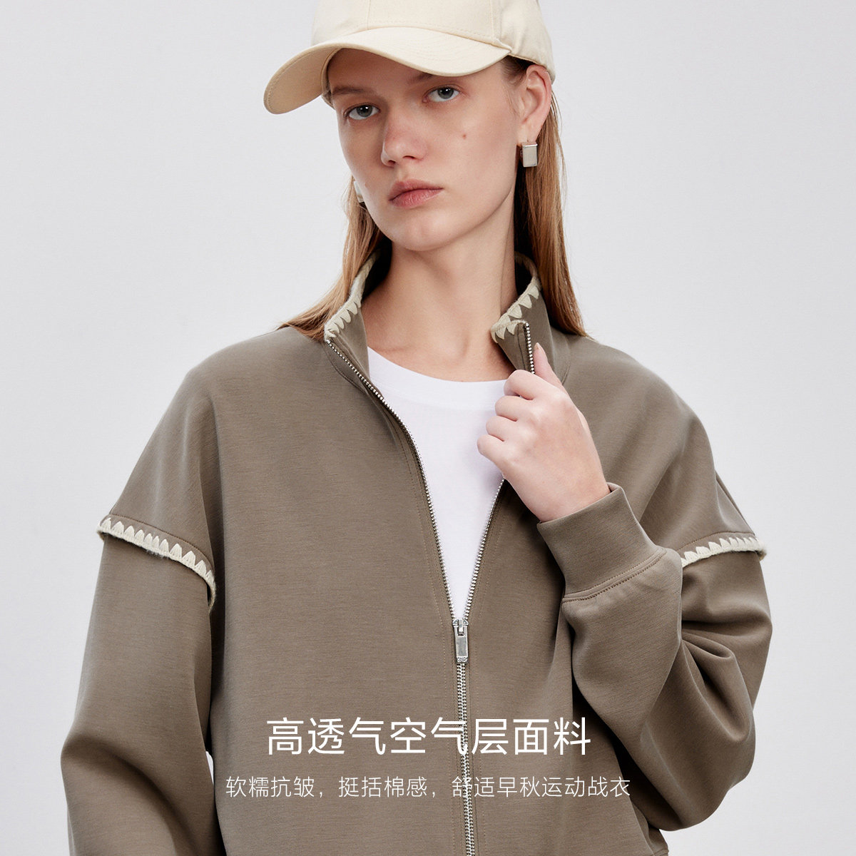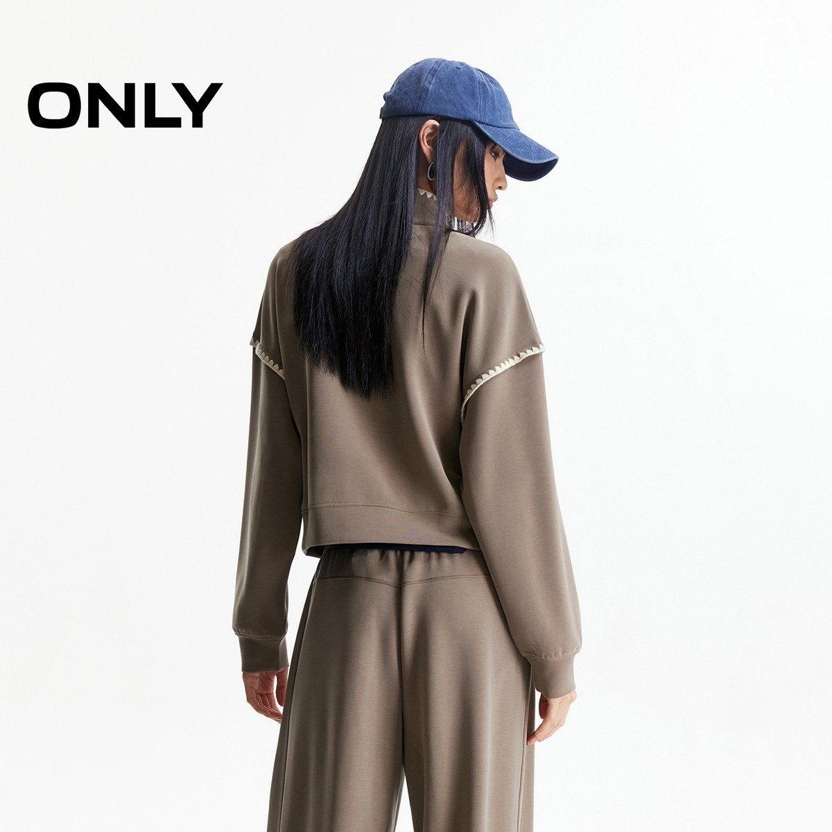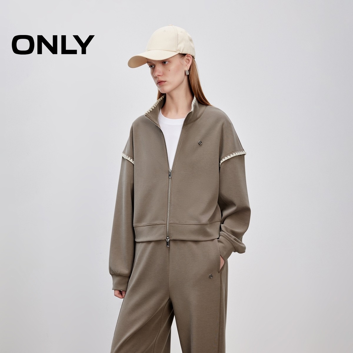 卫衣女 立领短款 12539R019 撞色锁边设计落肩开衫 ONLY2025冬新款