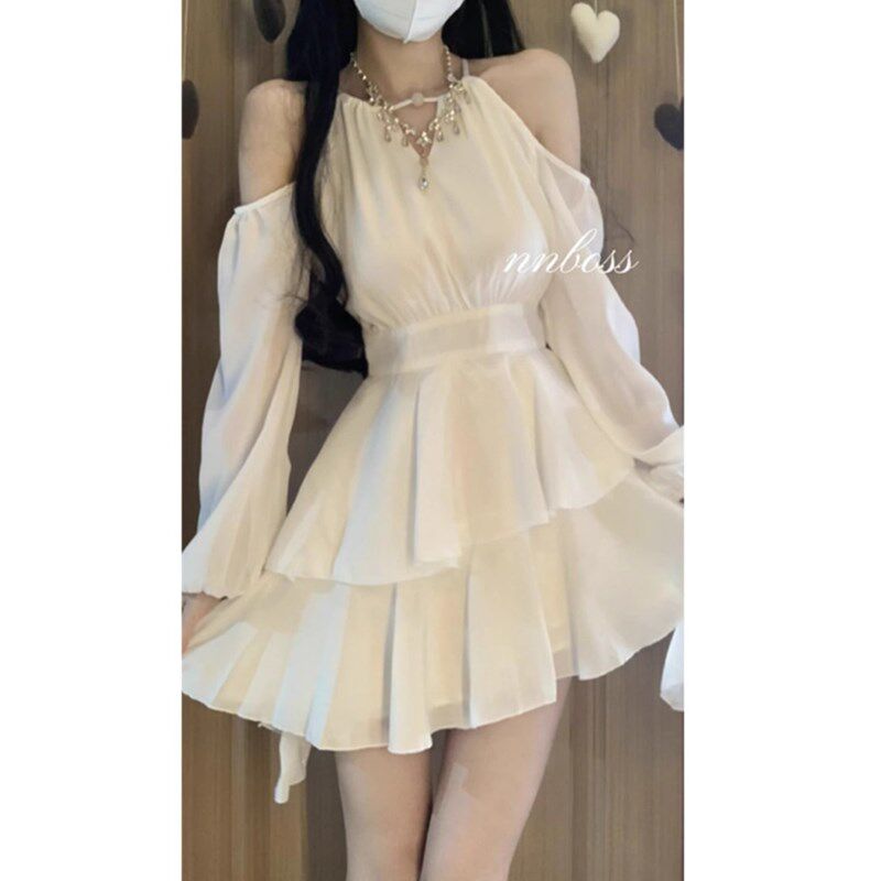 高级感气质仙女蓬蓬裙收腰小个子短 连衣裙子q女秋季 法式 白色长袖