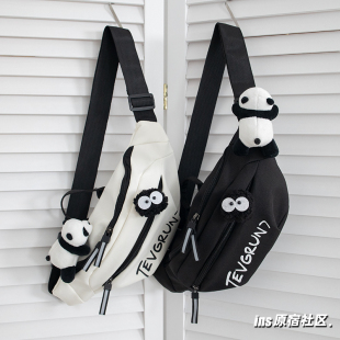 斜挎包男款 背包腰包运动单肩包女手机小挎包熊猫休闲 男生胸包男士