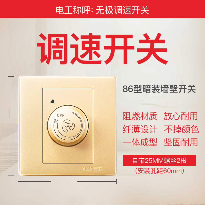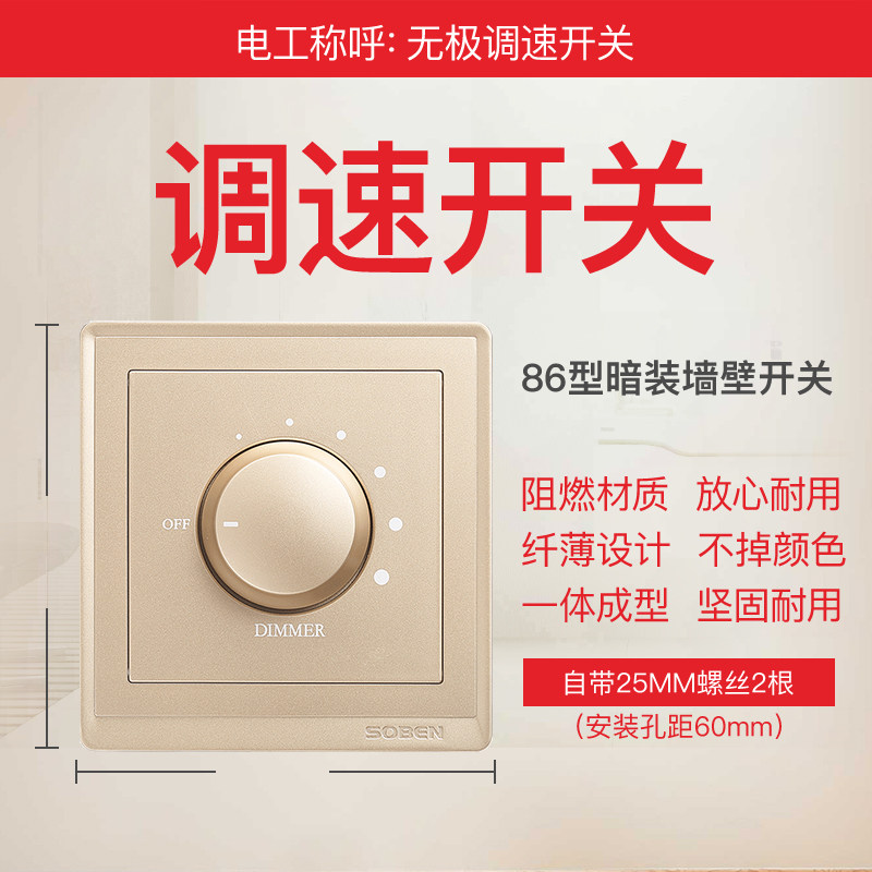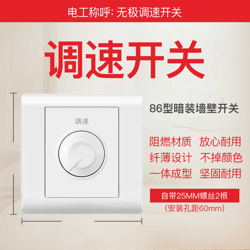 无级吊扇明装 调速开关86型风机调速器电风扇旋钮开关无极调速开关