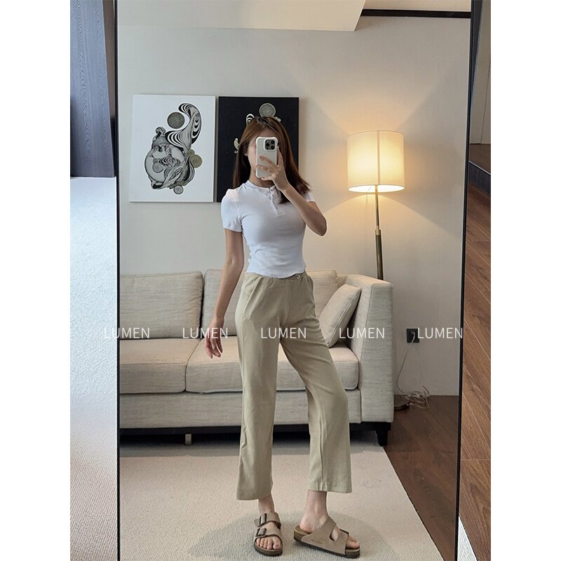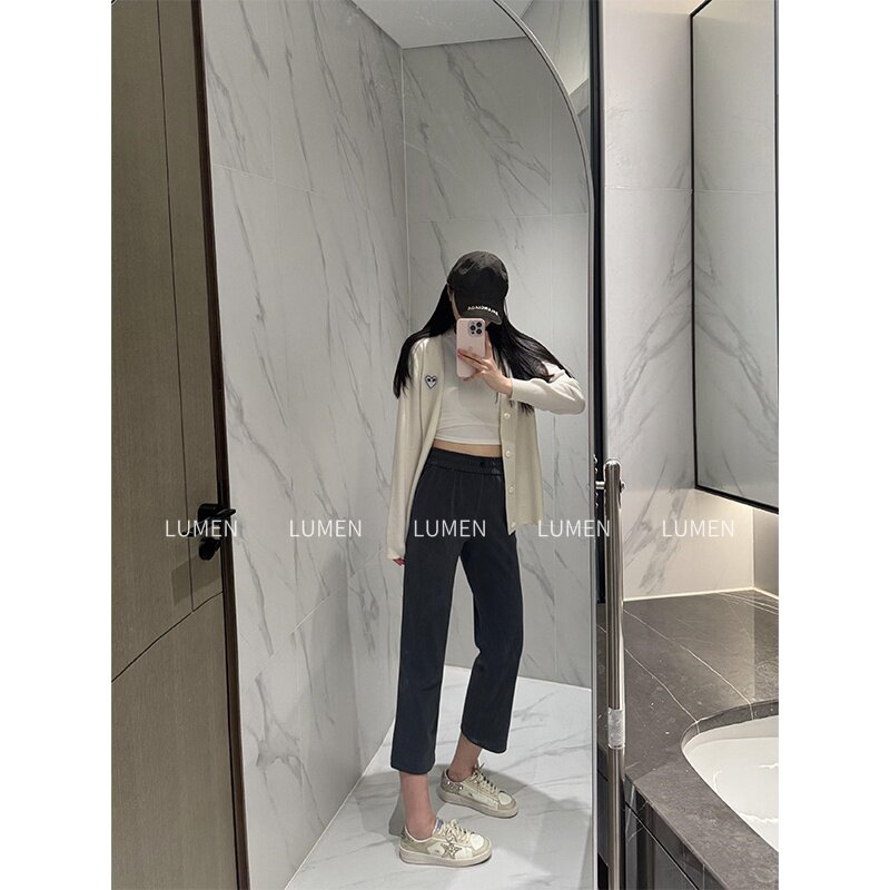 luqi lulu运动直筒soft女高腰空气层舒适休闲宽松显瘦七分中长裤