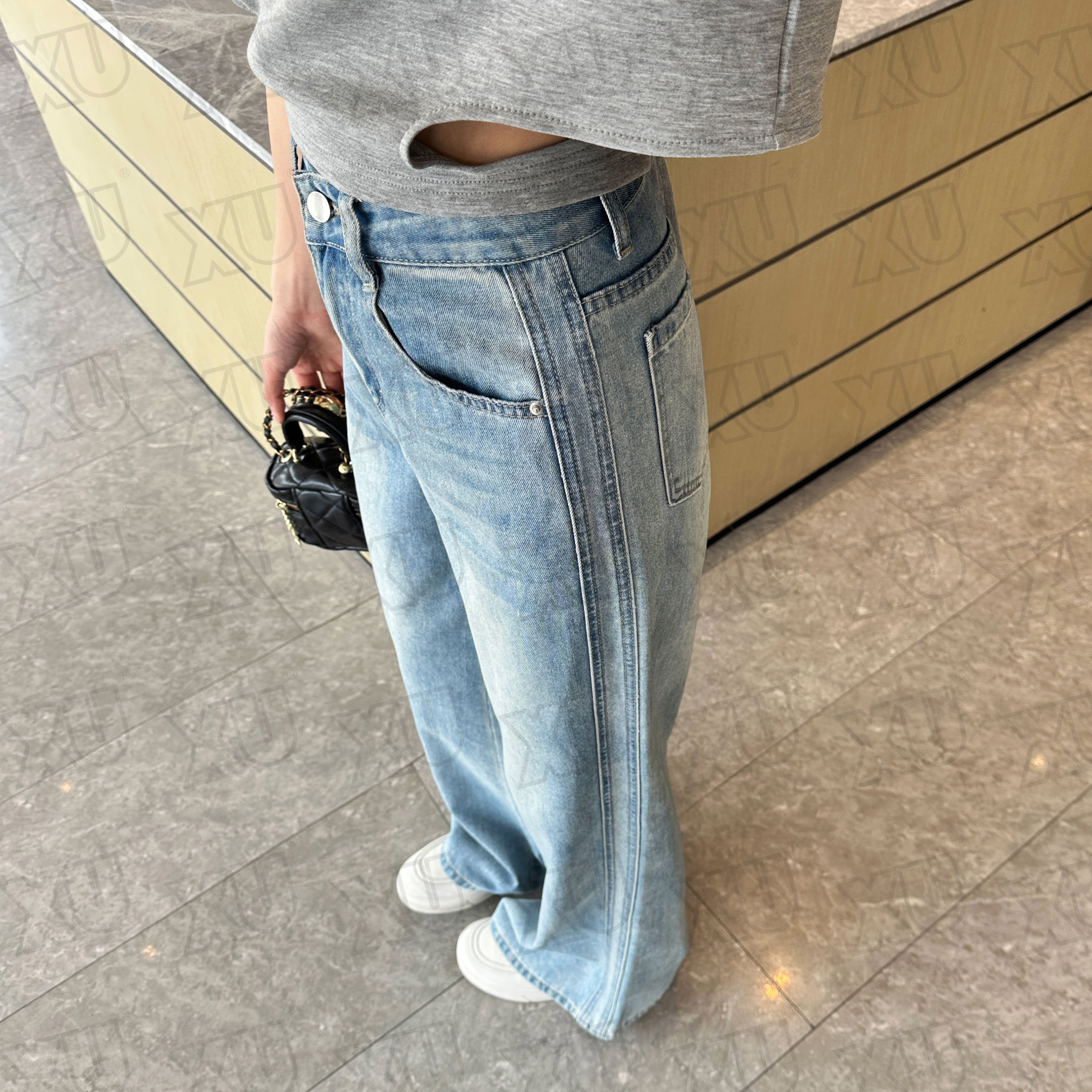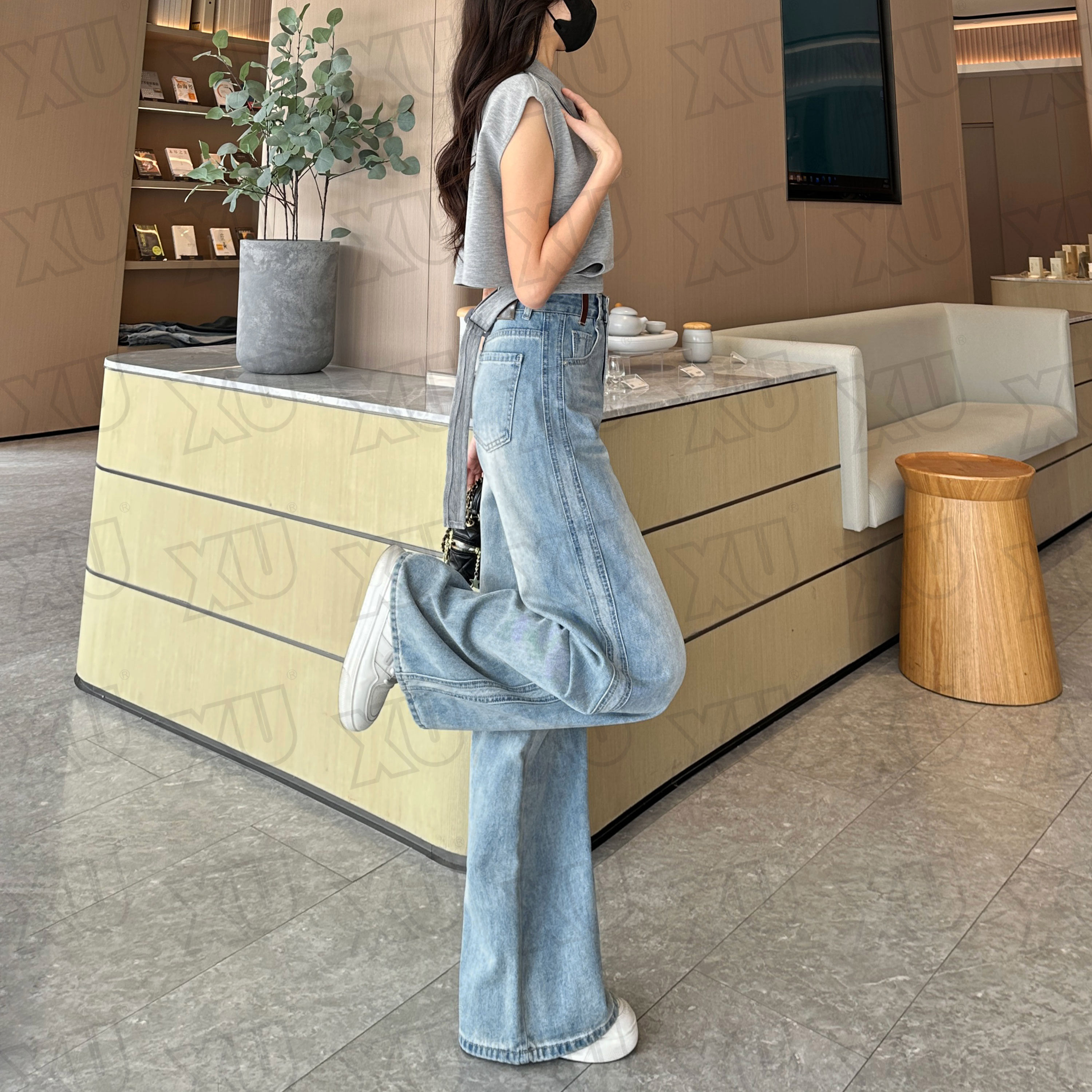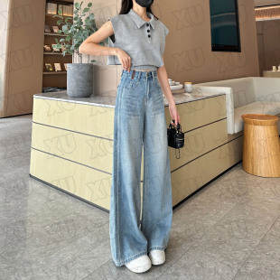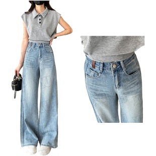 子云蓝设计感阔腿牛仔裤 7449高腰显瘦宽松裤 女垂感 运补6