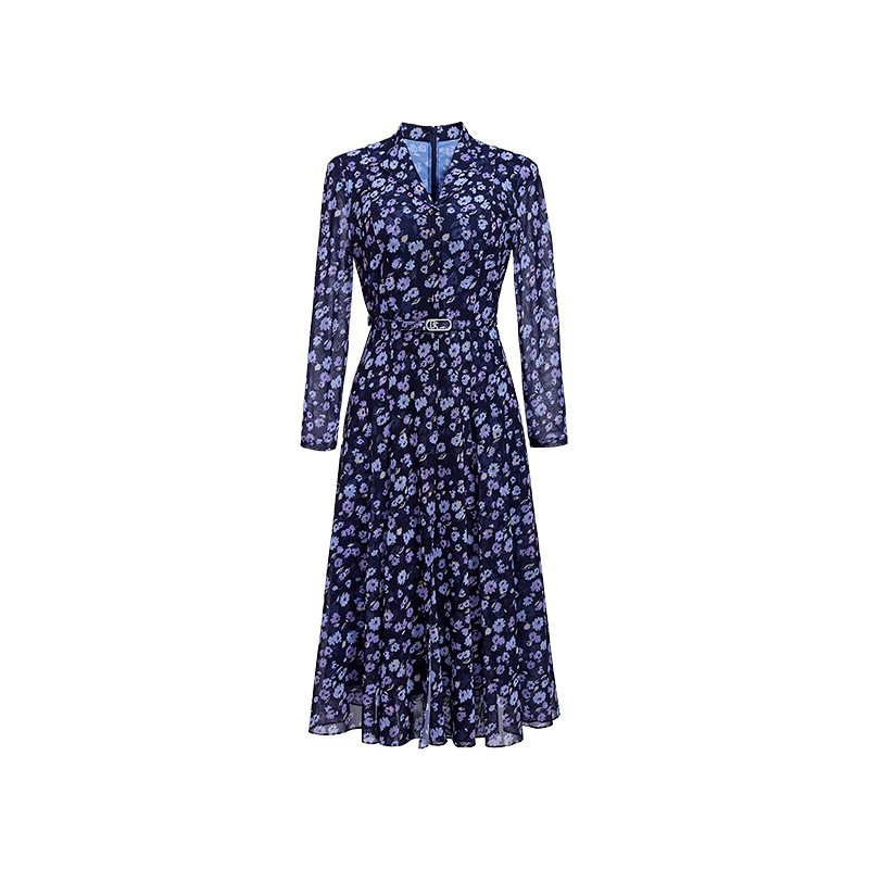 黛玛诗网纱连衣裙秋碎花裙收腰显瘦a字裙DC050083 商场同款