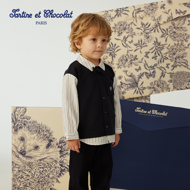tartineetchocolat法国巧克力童装 25秋男童假两件衬衫
