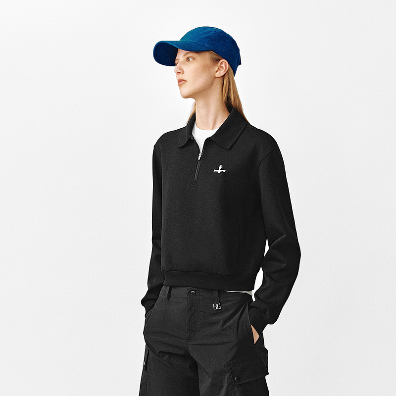 T恤百搭 比音勒芬春秋女士翻领套头卫衣半拉链长袖 莫代尔柔软