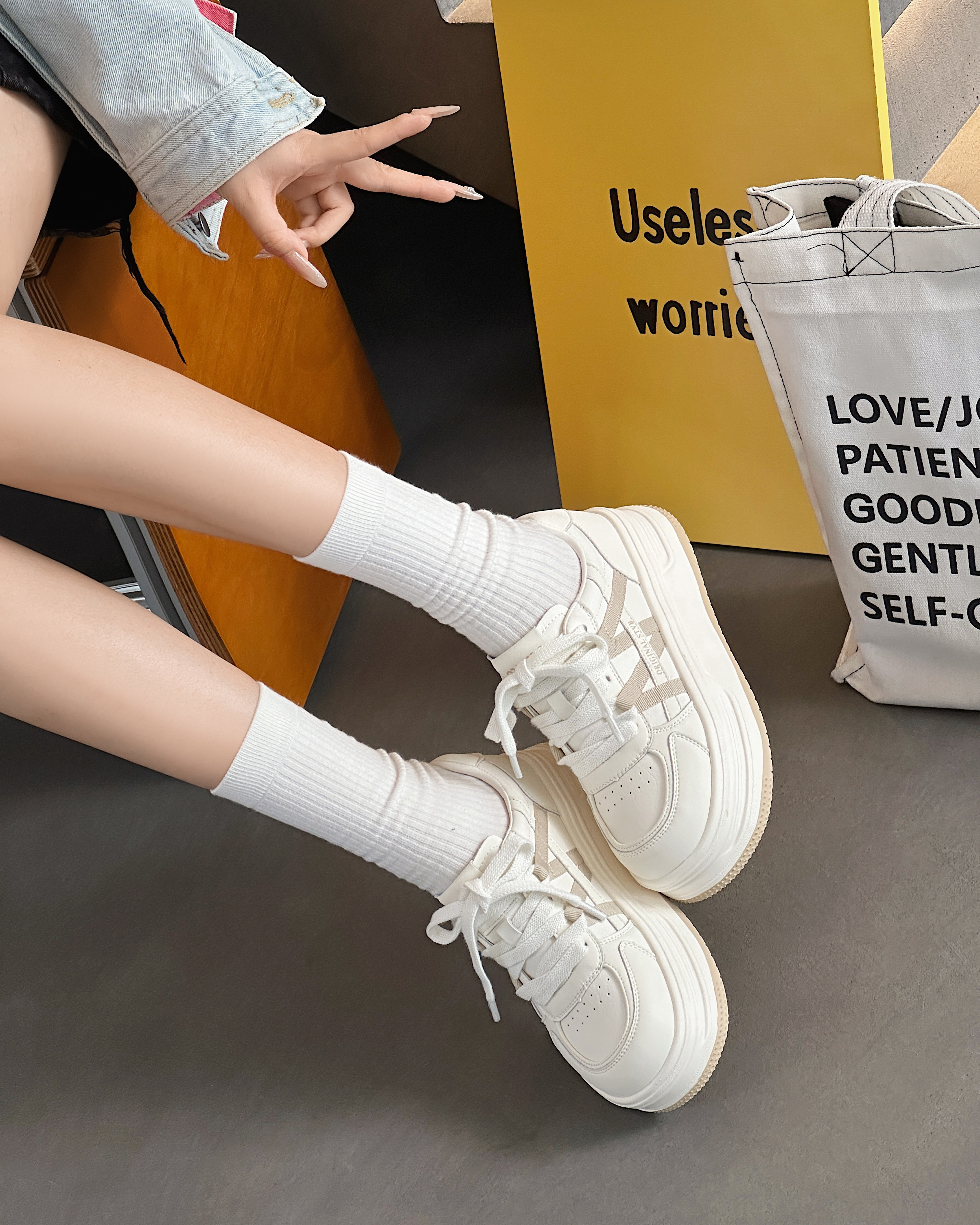 女款 学生空军一号运动鞋 厚底增高板鞋 百搭休闲鞋 男 秋季 乔丹小白鞋