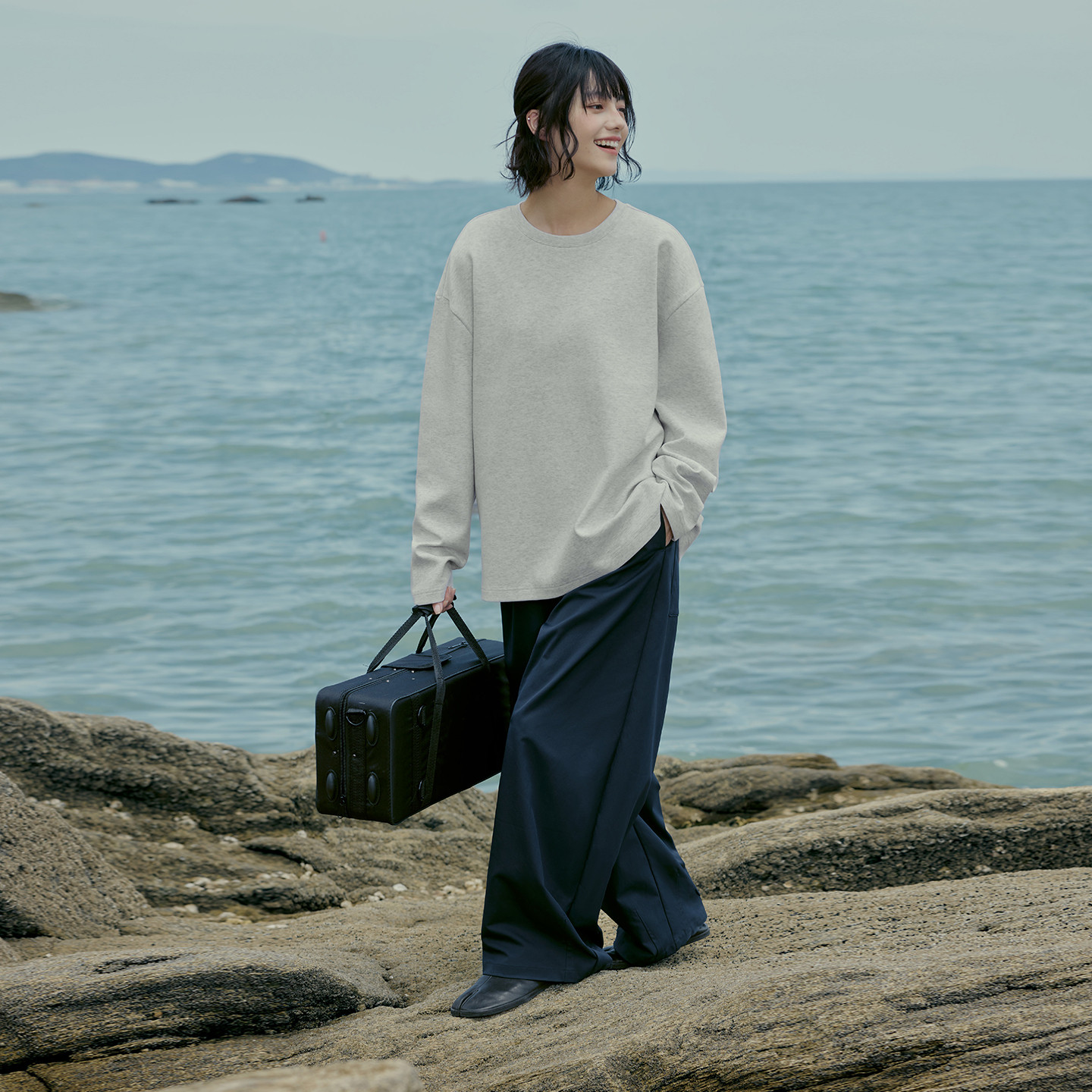 女装 男装 空气层 简约小皮标圆领T恤长袖 PSO 上衣打底衫 Brand