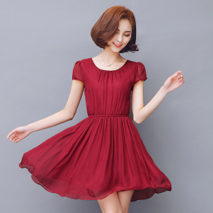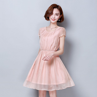夏装 短袖 女装 显瘦大码 桑蚕丝连衣裙 修身 真丝连衣裙夏2020新品