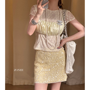 法式 金丝雀 原创亮片半身裙女设计感宽松A字短裙 LEA宋亦雯 ZONEE