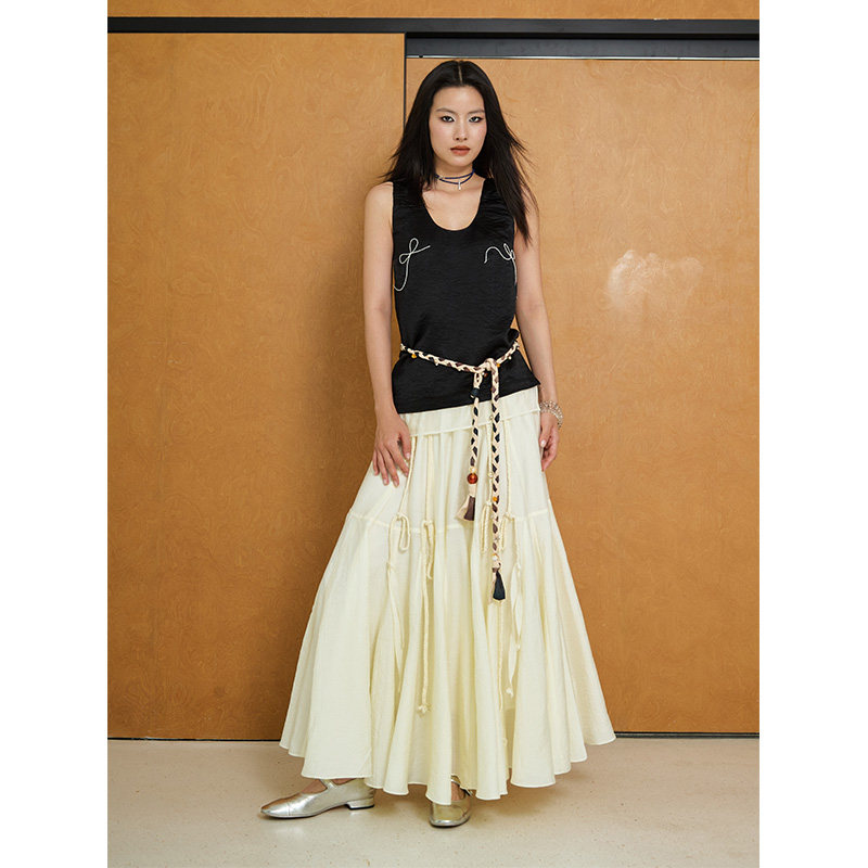 重工艺拼接手编辫子半身裙夏中长款 原创设计师款 小辫子姑娘 洛边