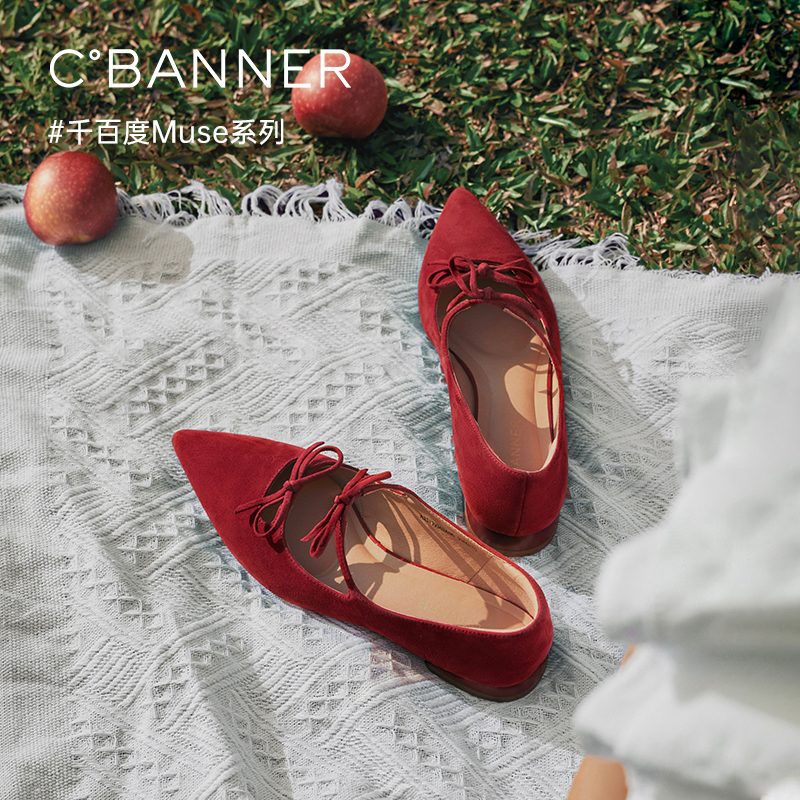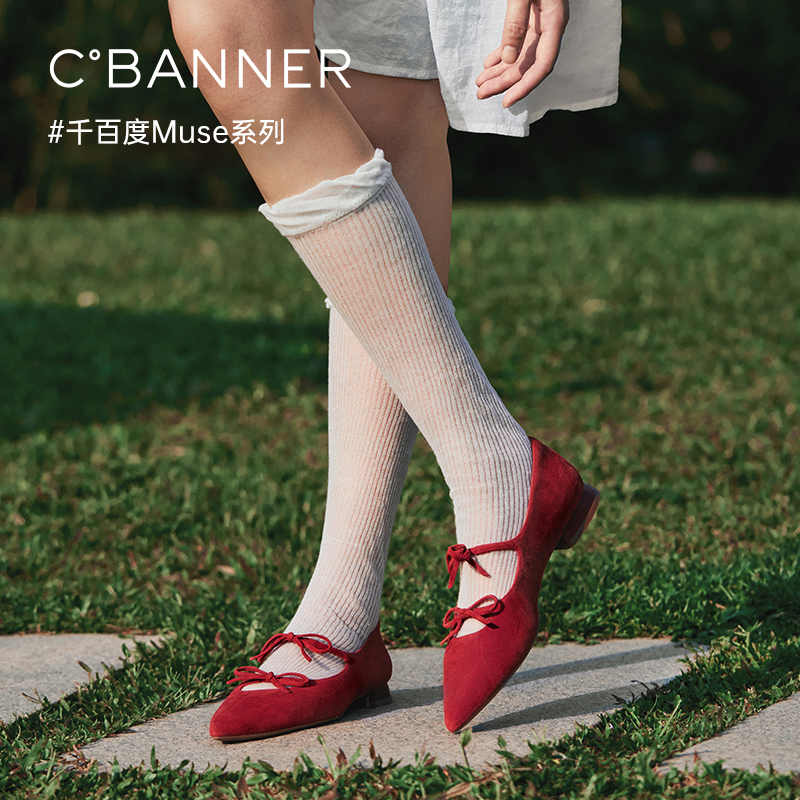 红色玛丽珍鞋 法式 百思图莫奈花园25秋新款 女单鞋 乔欣明星同款