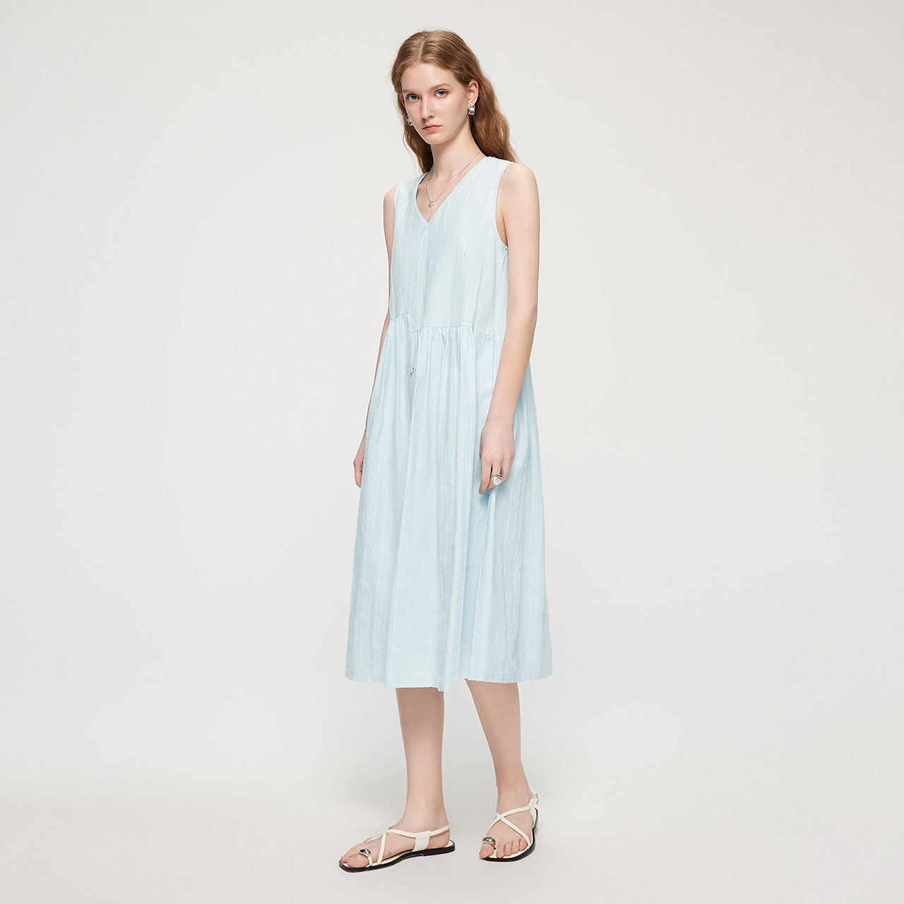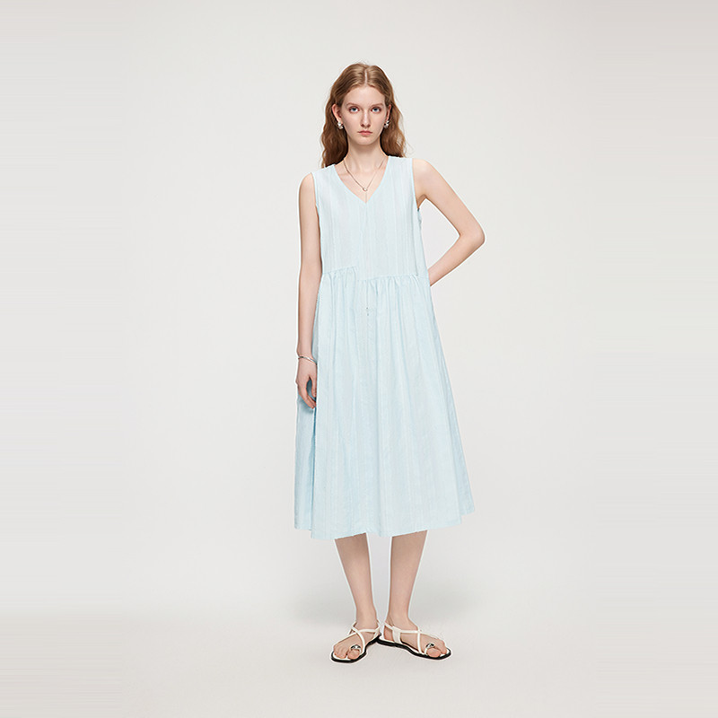 连衣裙女 长款 摩萨克2025夏新款 纯棉V领宽松波西米亚风拼接无袖