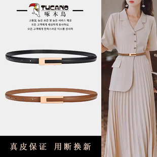 啄木鸟皮带女装 细腰带 饰配连衣裙子平滑扣设计感小众高级感牛仔裤