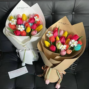 网红女神母亲节包花结郁金香蝴蝶结长绳花束装 材料 饰结鲜花包装