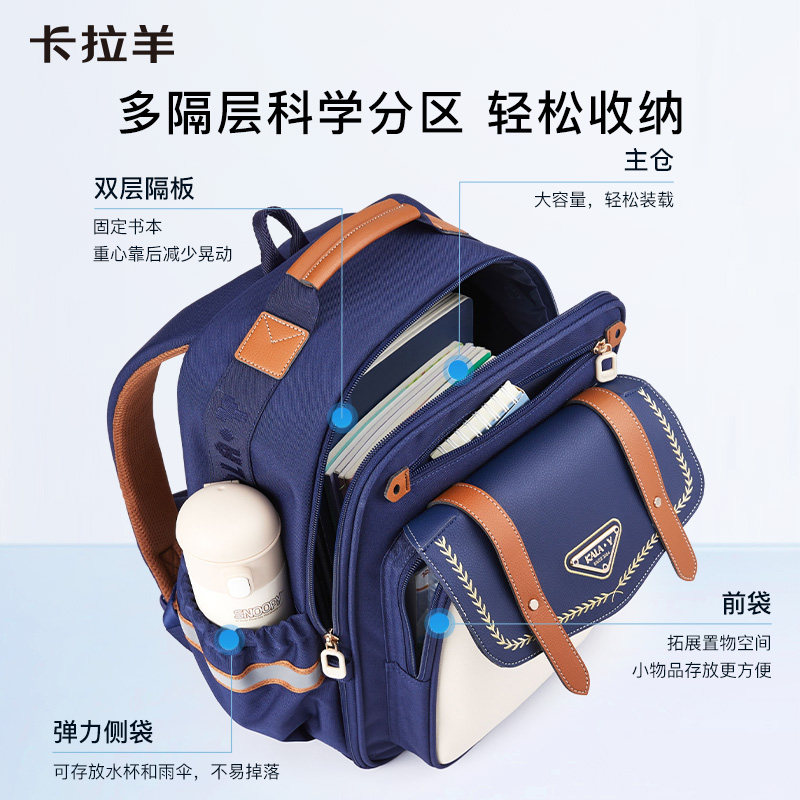卡拉羊1 6年级小学生减负大嘴书包防下坠轻便大容量女双肩包男