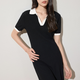 针织连衣裙裙子A字撞色透气夏季 OCHIRLY欧时力 polo领短袖