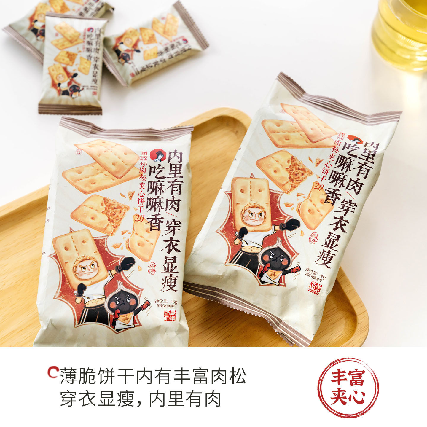 茶颜悦色黑蒜肉松夹心饼干夹心韧性饼干解馋小零食48g 袋