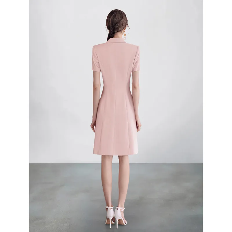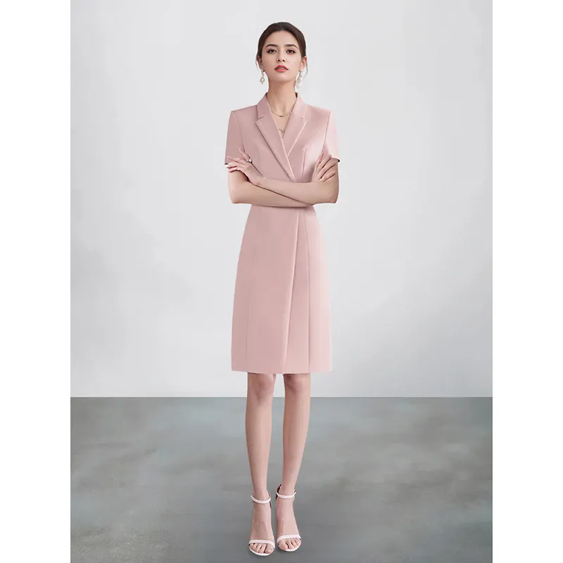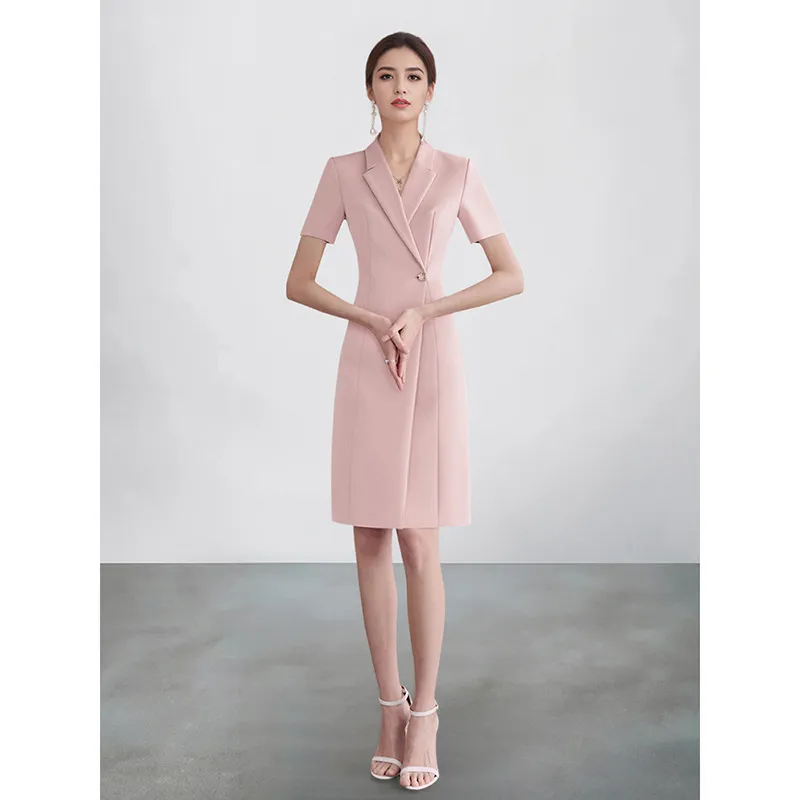 职业套裙ol 美容院店长工作服高端夏天薄款 粉色西装 连衣裙职场正装