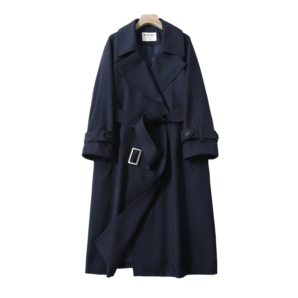 战壕大衣廓形英伦外套男秋 灰色巴尔玛肯风衣中长款 马登工装 德式