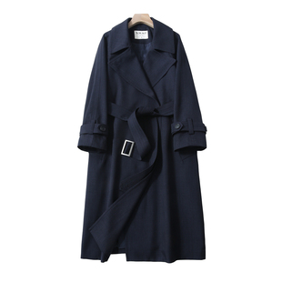 Aurocean 学院羊毛呢大衣炭灰色双面呢廓形风衣外套 长度刚刚好