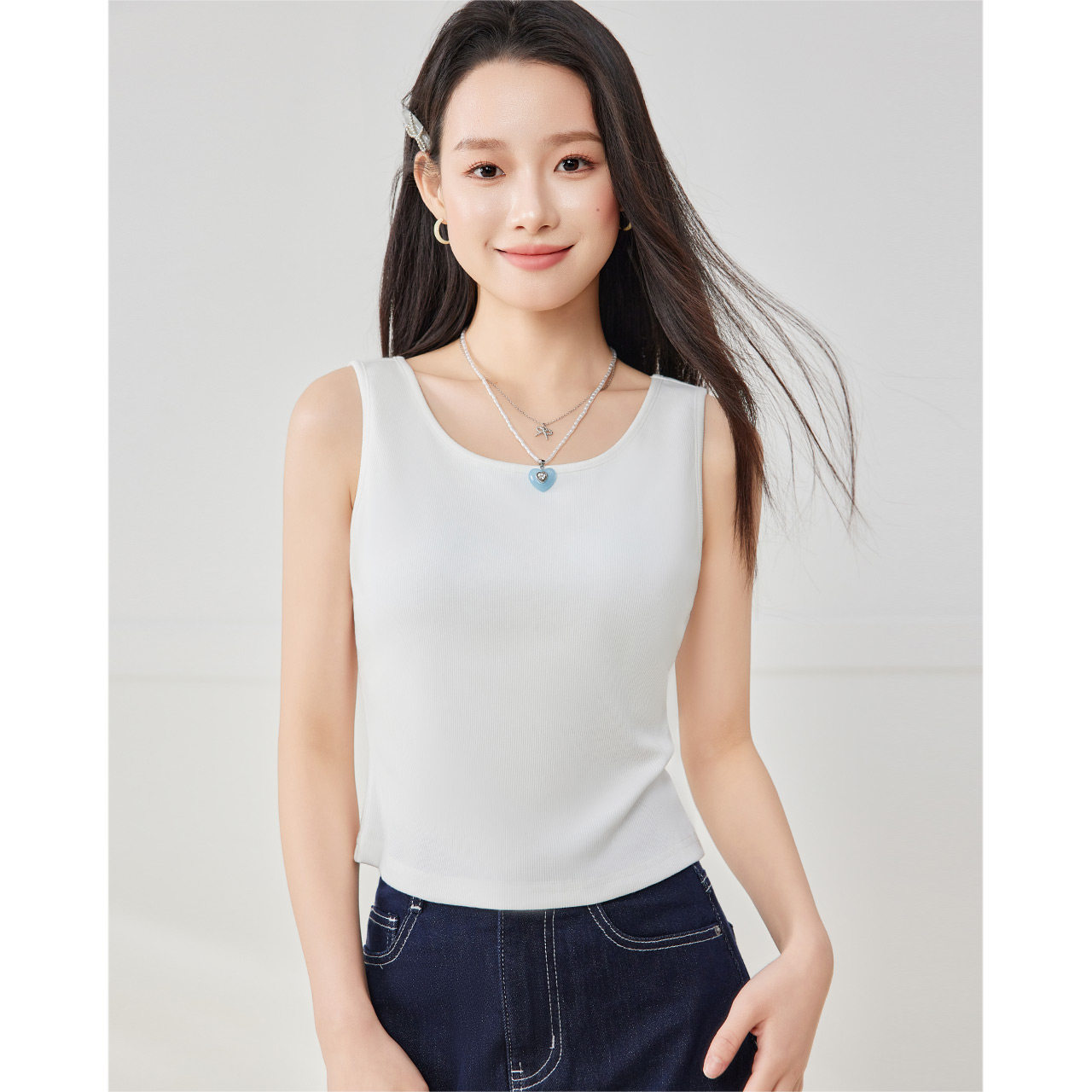 爱依服 简约纯色通勤百搭修身 小个子 新款 背心上衣 2025夏季 IEF