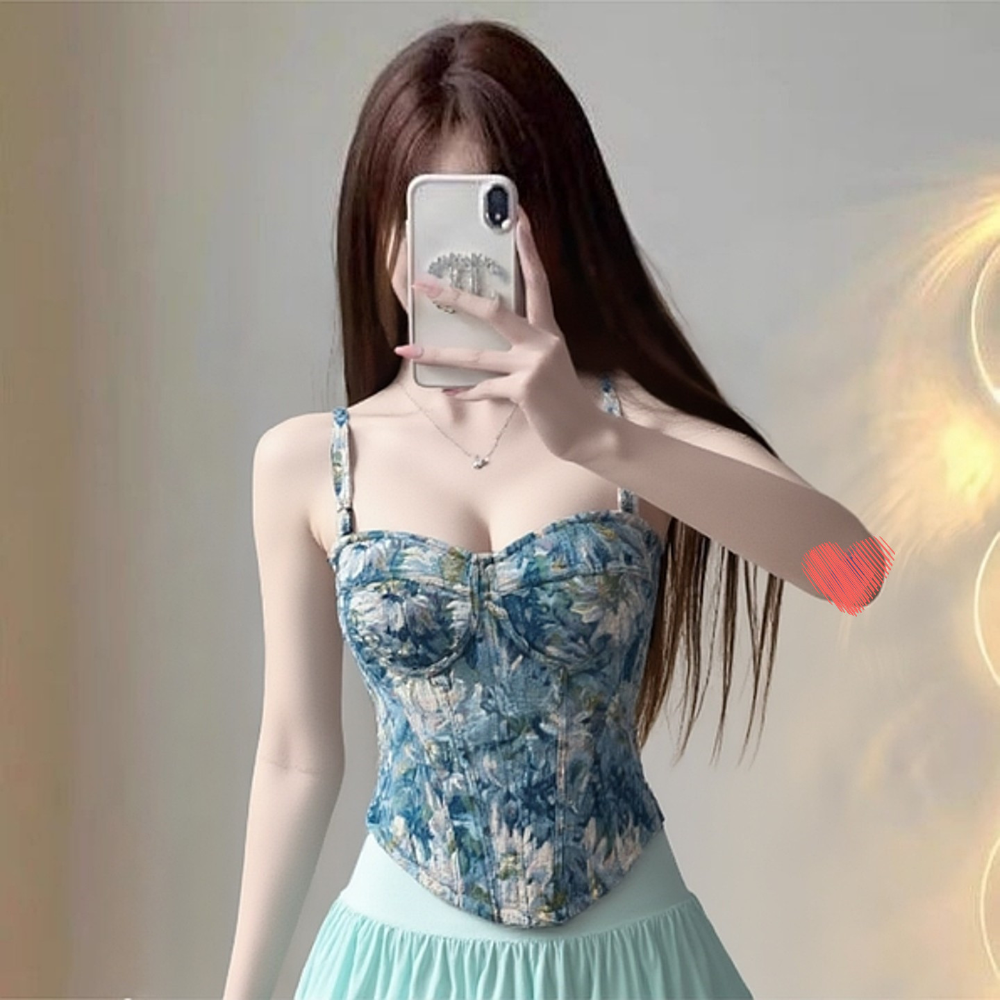 莫奈花园印碎花外穿鱼骨胸衣钢圈背心吊带短款 上衣打底内搭抹胸垫