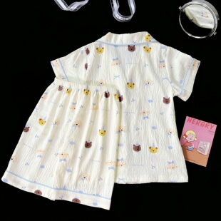 夏季 小女孩2025新款 公主风女童家居服 短裤 甜美小熊儿童睡衣女短袖