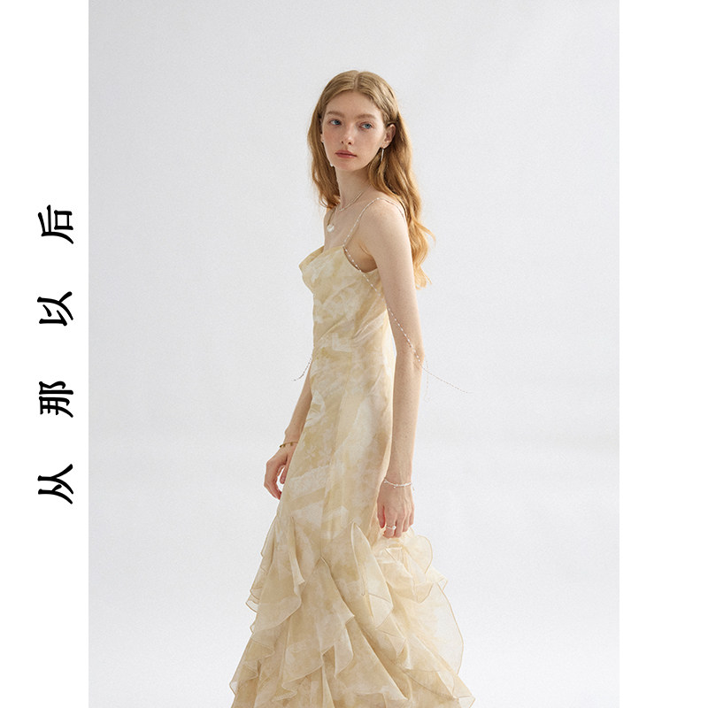 从那以后法式 裙子吊带裙度假风荷叶边连衣裙高级感长裙不规则裙夏