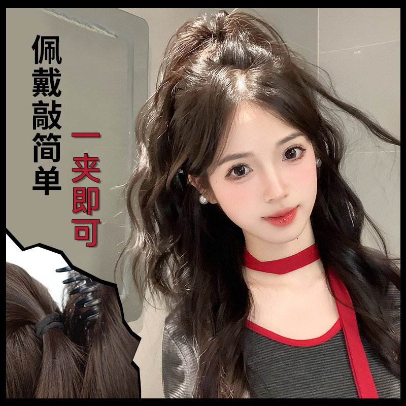 水波纹卷发瀑布半扎高马尾假发抓夹女蓬松增发神器喷泉长辫子发饰