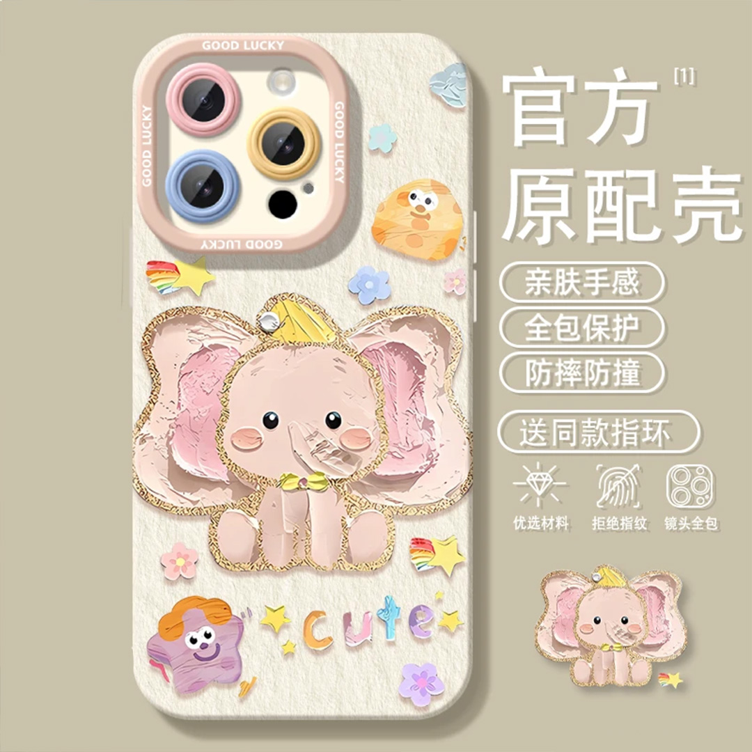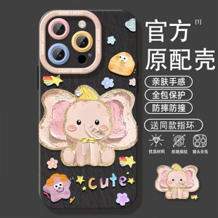 油画小飞象适用iPhone15promax手机壳苹果16保护套13pro个性 xs网红超火14pm新款 7p软 卡通12手机壳11新款