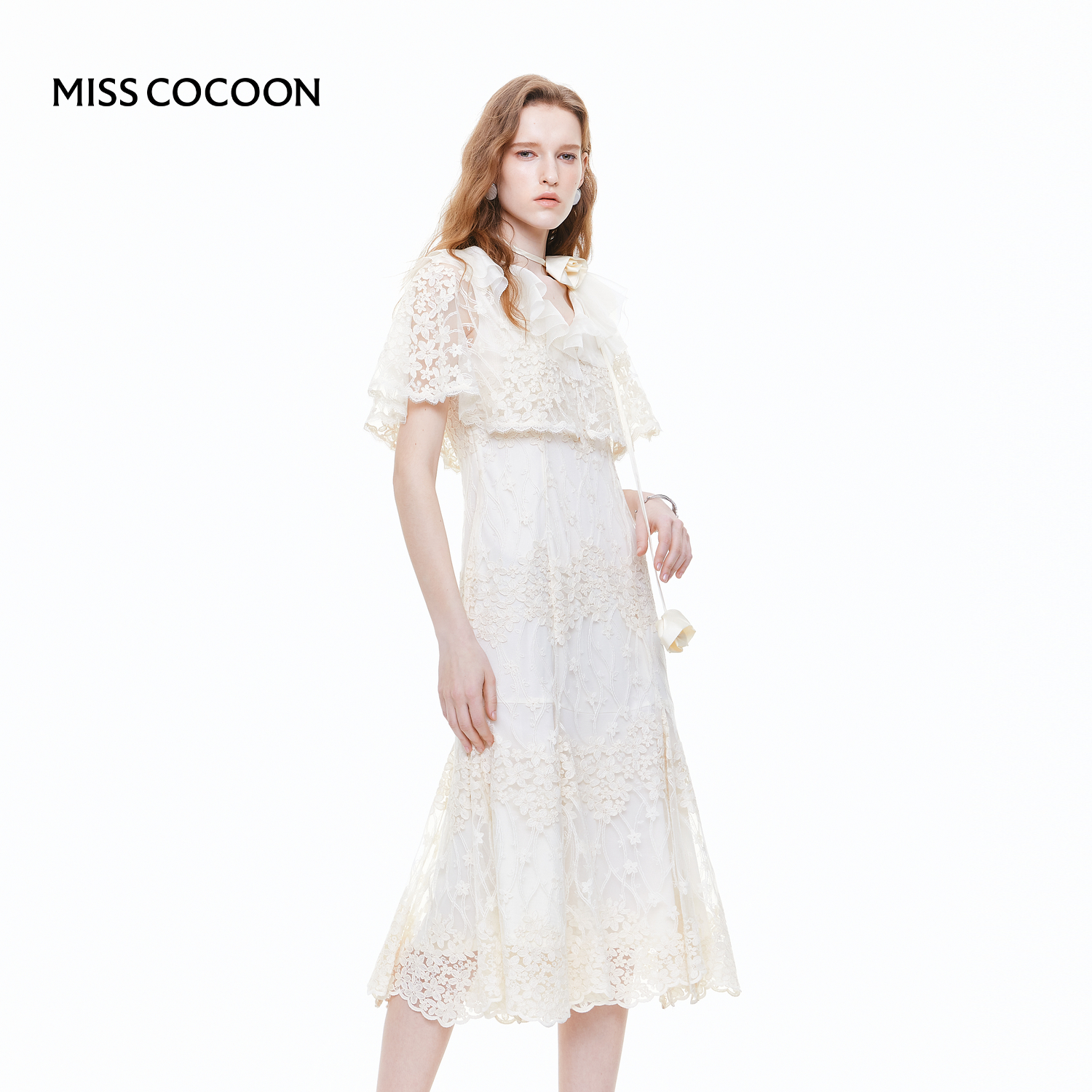 度假裙子 新款 MISS COCOON可可尼双层鱼尾裙荷叶领连衣裙2025夏季