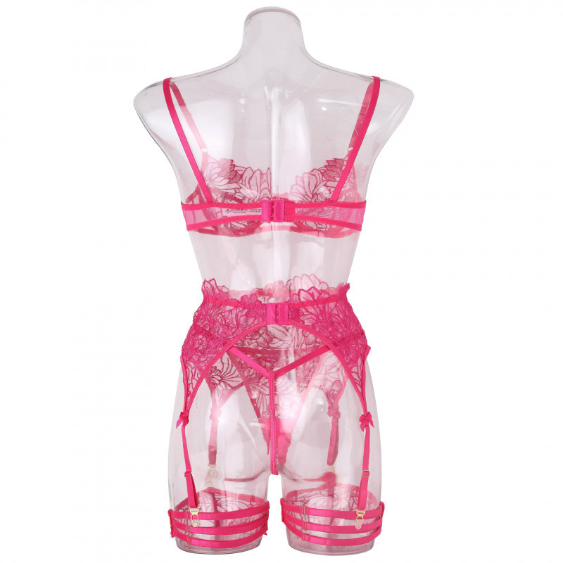 2025夏季 女士 欧美性感内衣吊袜刺绣聚拢塑身分体套装