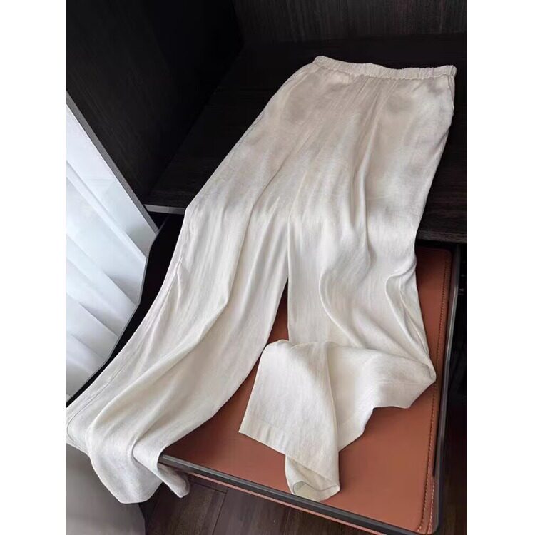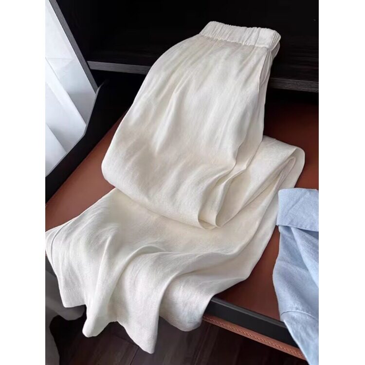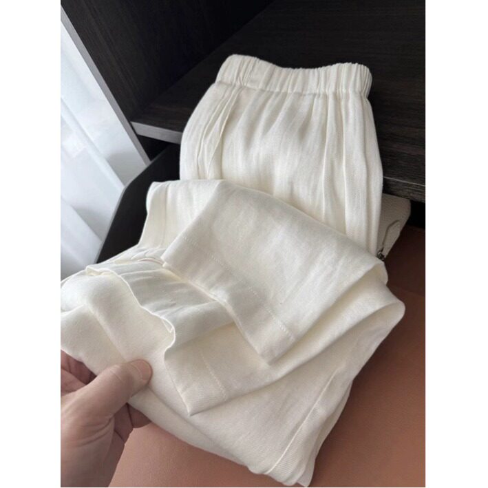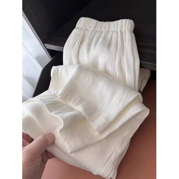 子松紧腰休闲长裤 慵懒松弛棉麻阔腿裤 高端白色亚麻裤 薄款 女春夏季