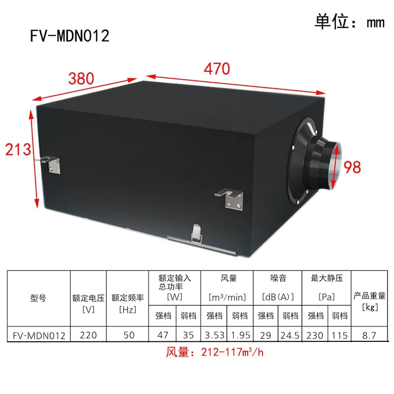 松下室内新风系统过滤PM2.5净化型送风机单向进气扇强劲FV MDN012