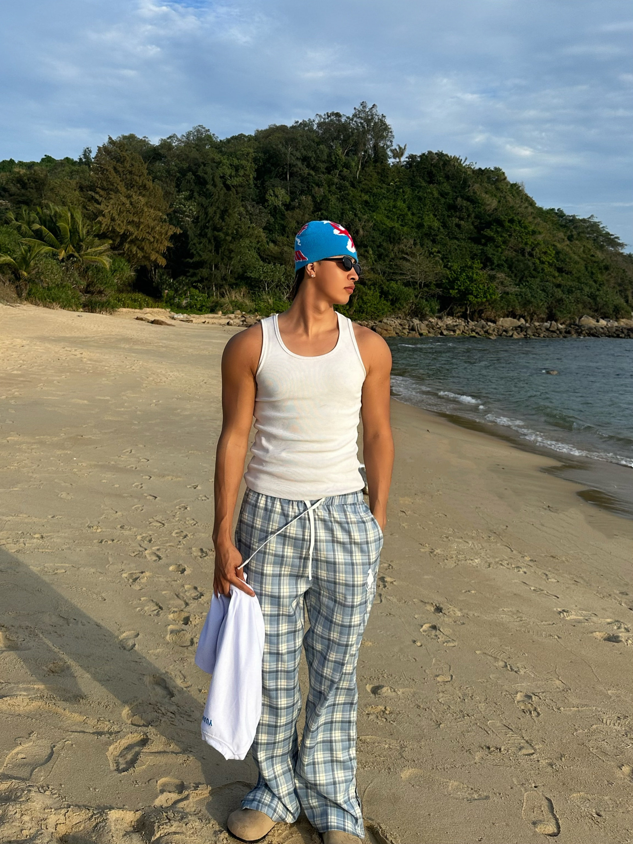 原创宽松休闲cleanfit阔腿裤 YUANQ北卡蓝直筒微喇叭拉链长裤 美式