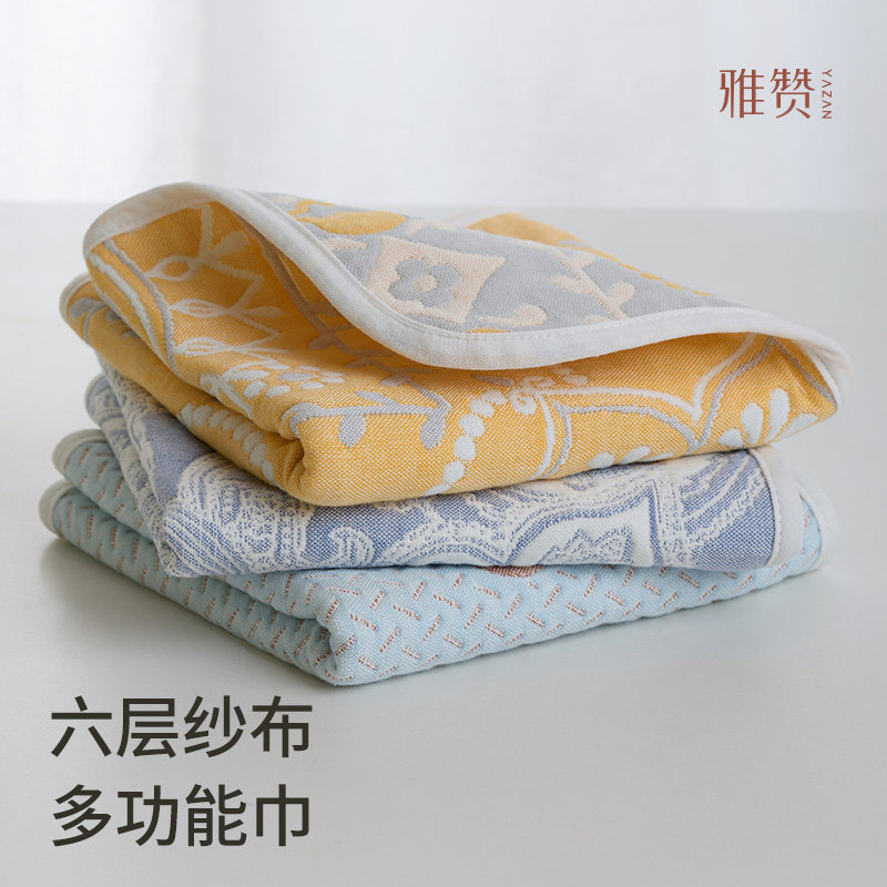 雅赞六层纱布多功能巾大毛巾婴幼儿枕巾软席毛巾吸汗透气推车坐垫
