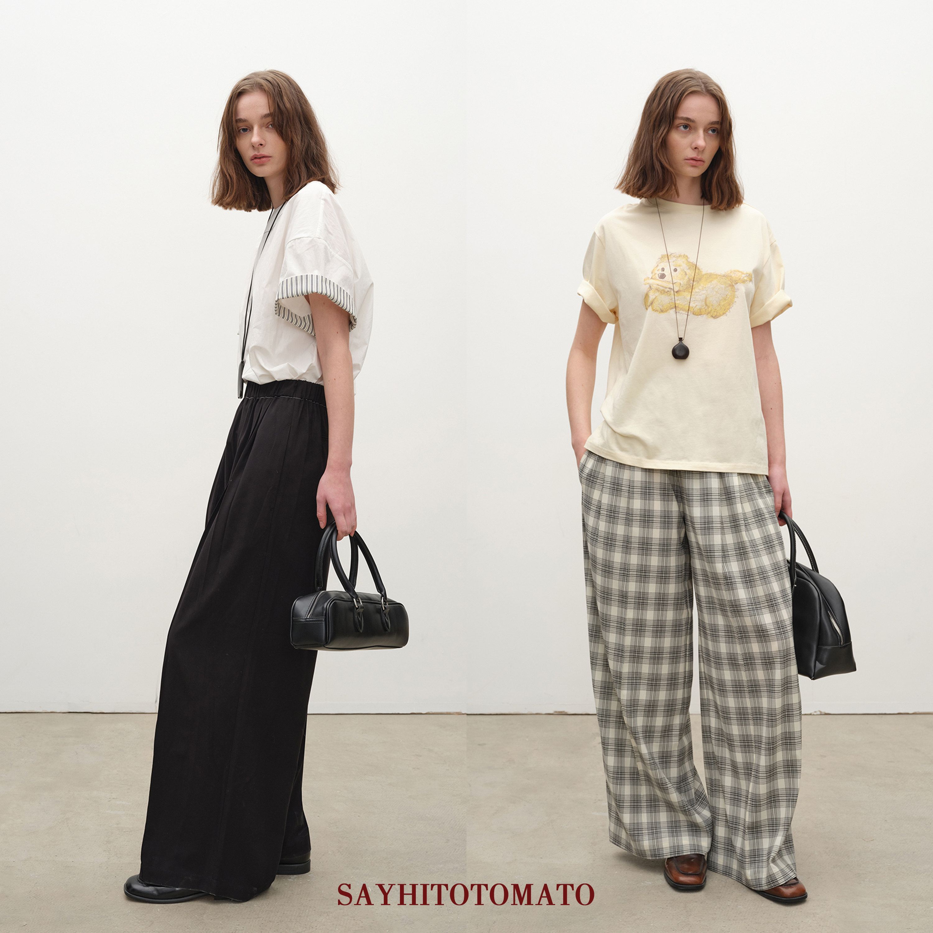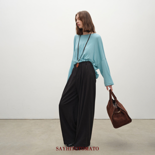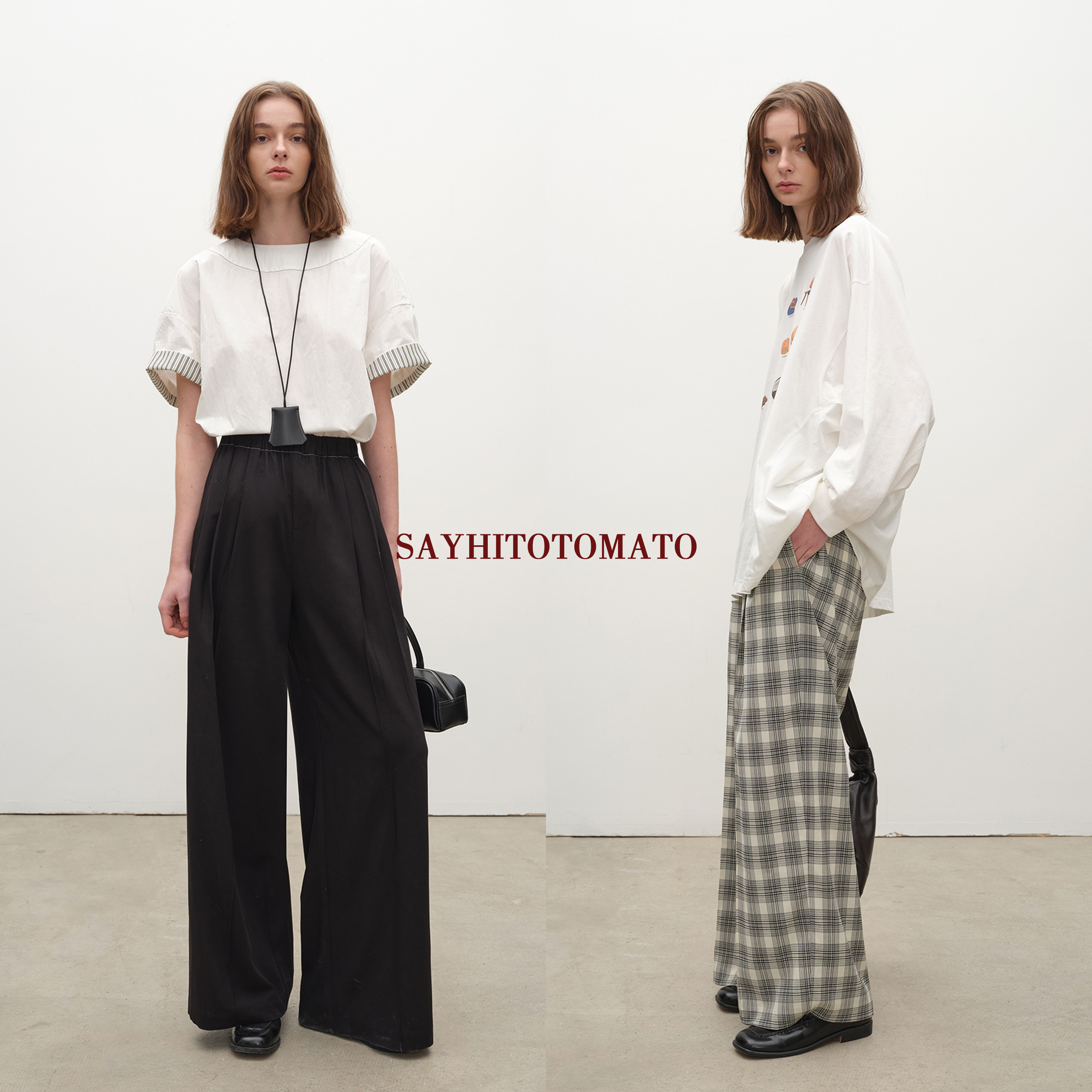 型垂感松紧腰宽松阔腿直筒裤 气质版 绵绵华夫饼 Sayhitotomato
