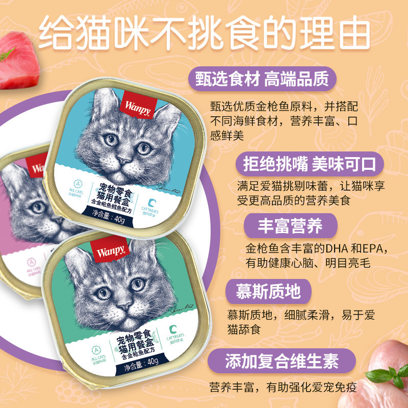 wanpy顽皮猫罐头猫咪零食湿粮鲜封包40g 6罐成猫猫餐盒营养