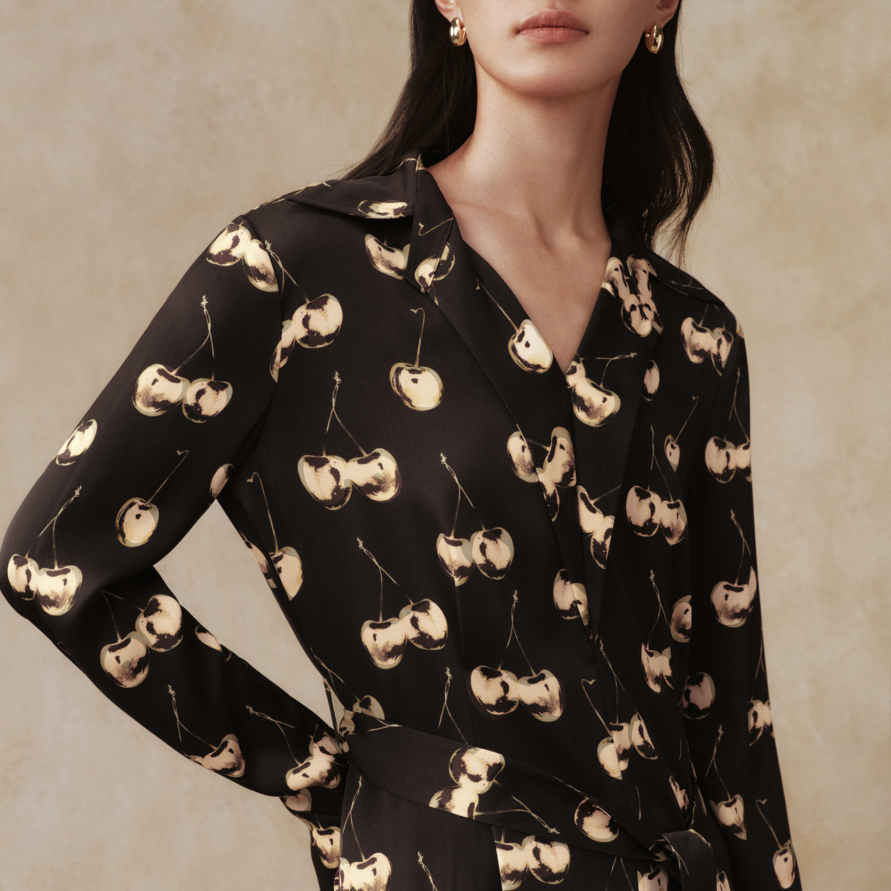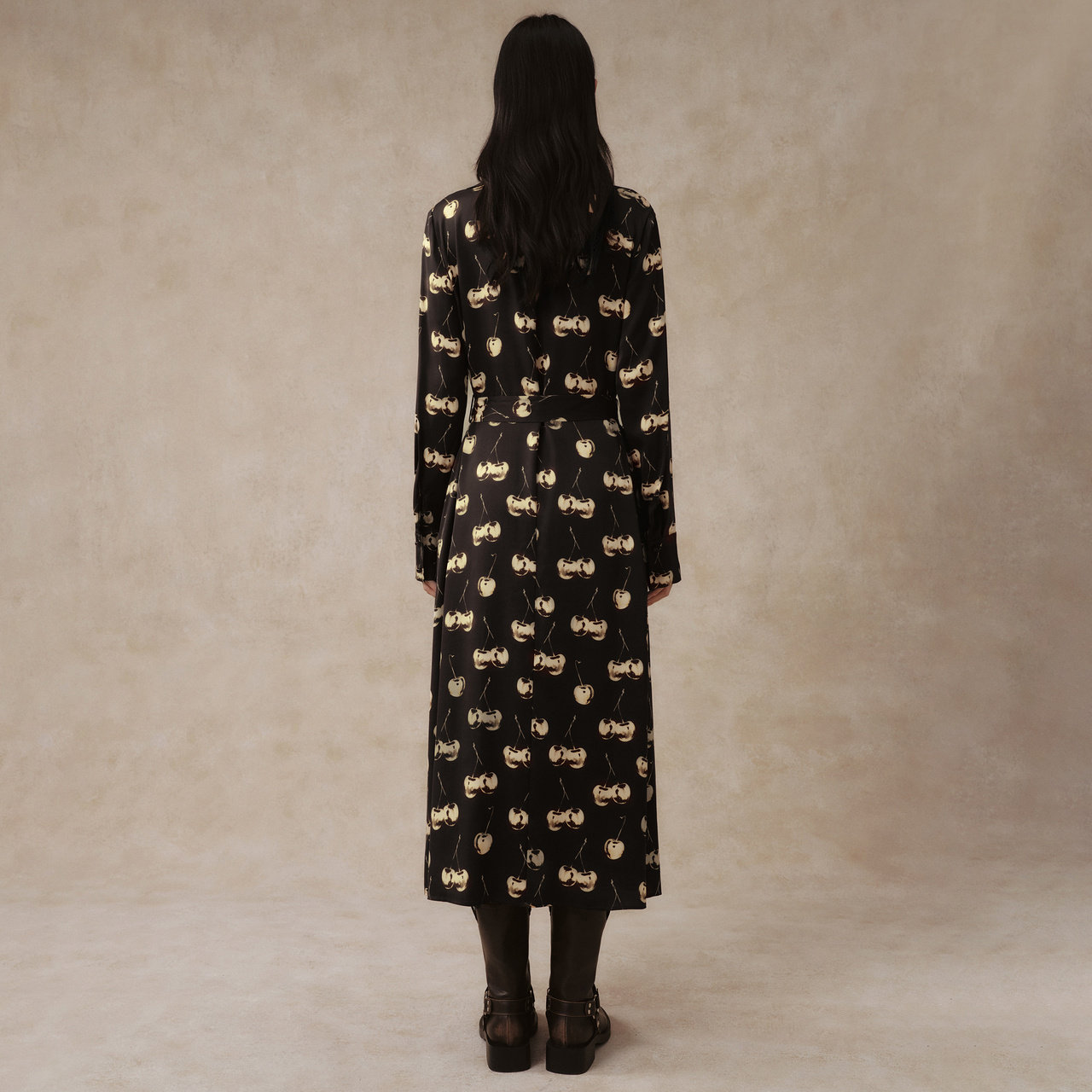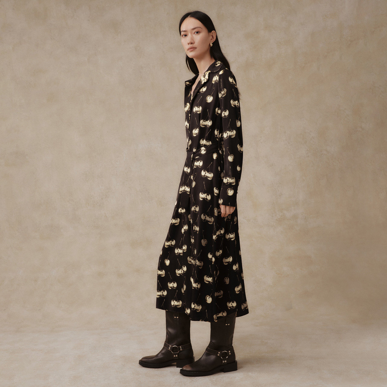 IMM尹默春桑蚕丝19MM弹力双乔绉樱桃花型长袖 连衣裙女