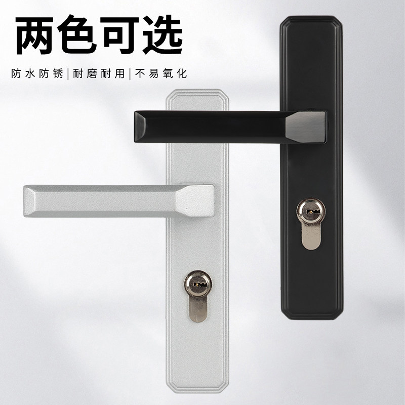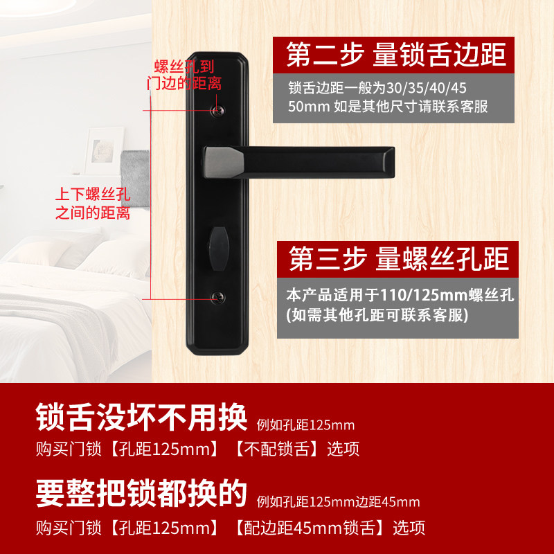 卫生间带钥匙单舌铝合金门洗手间黑色静音门锁厕所通用型卫浴把手