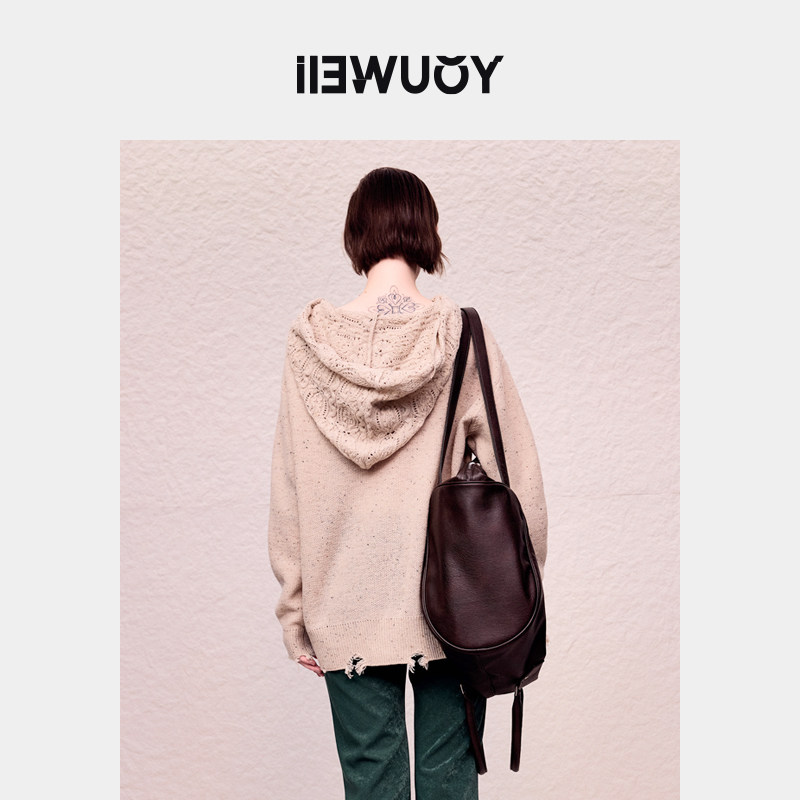 YOUWEI有尾2024秋季 女外套Y2124302 少女提花连帽针织衫