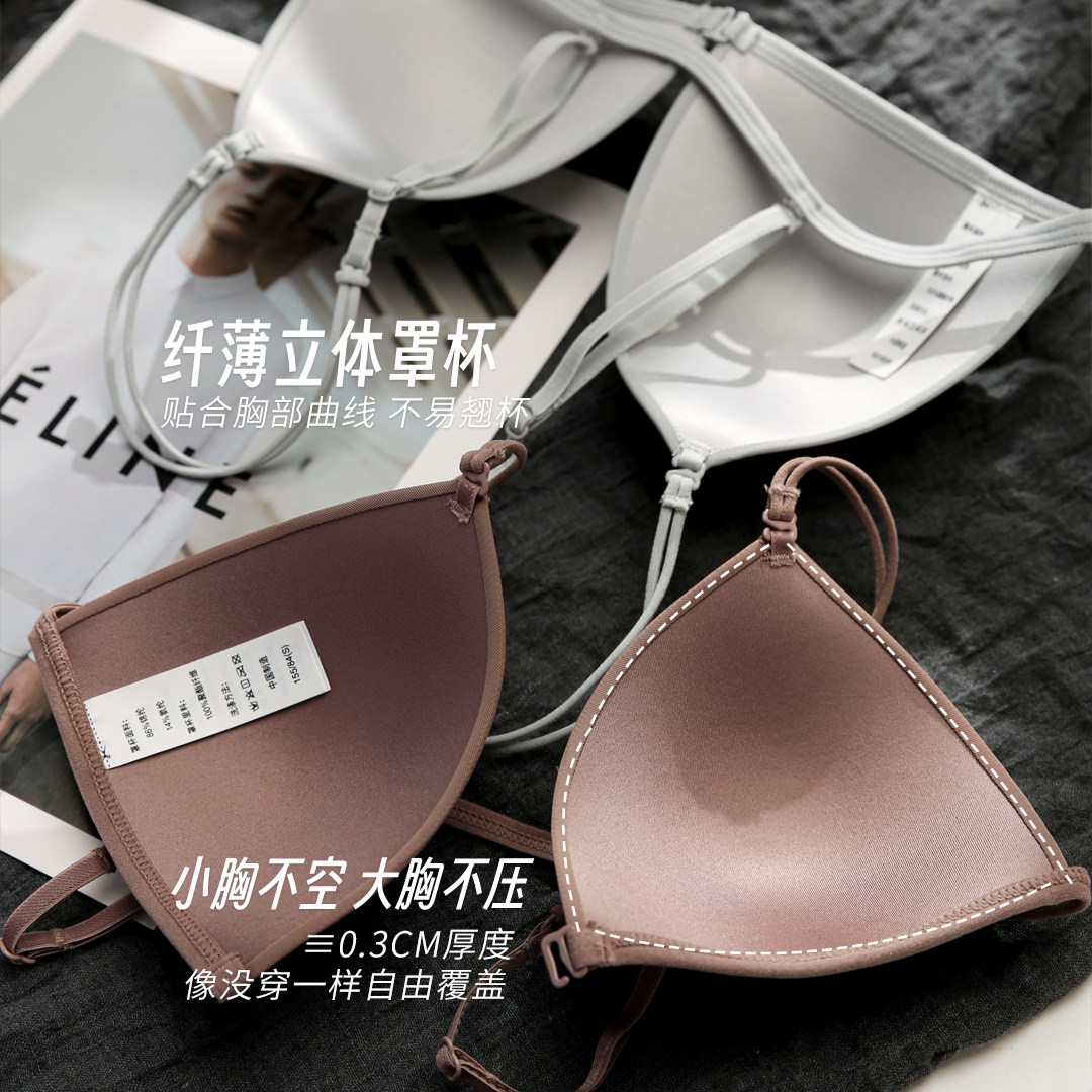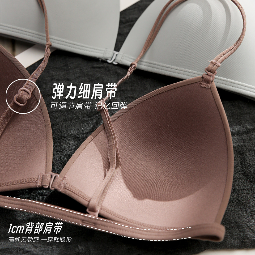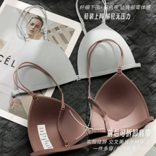 细带无痕挂脖前扣内衣女小胸聚拢三角杯无钢圈大胸显小美背文胸罩
